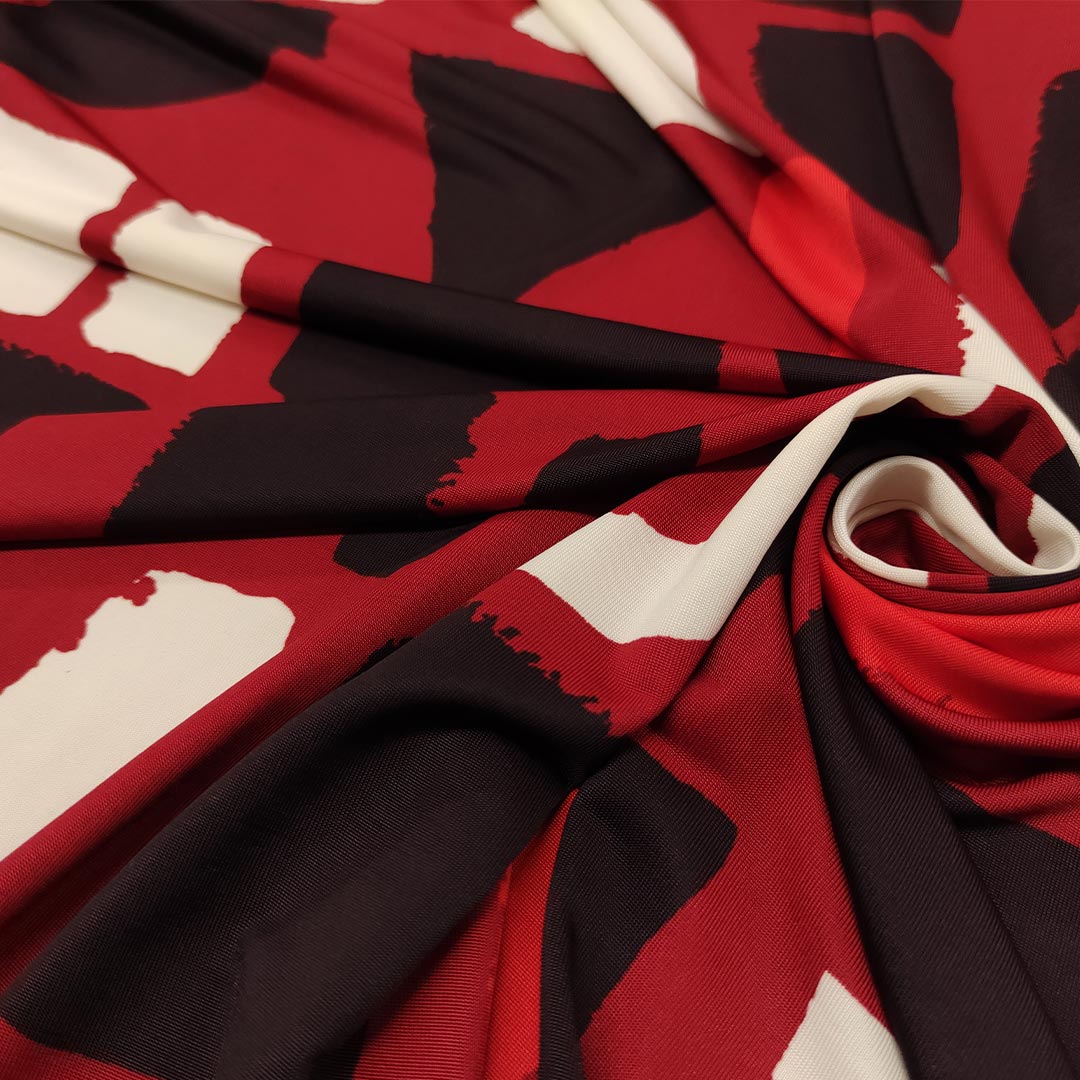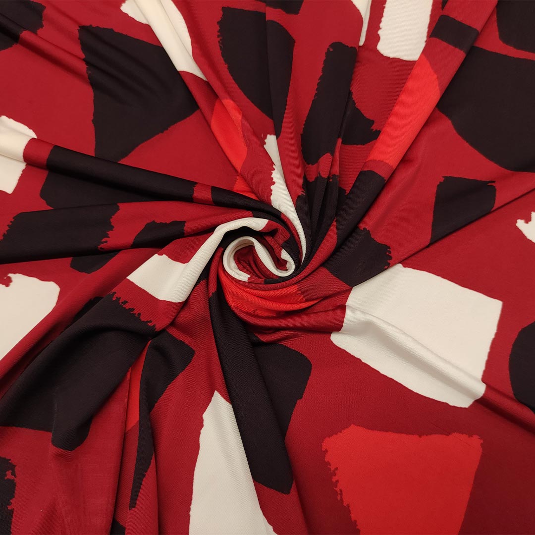 Tessuto Jersey a fantasia motivo astratto rosso – bordeaux – bianco