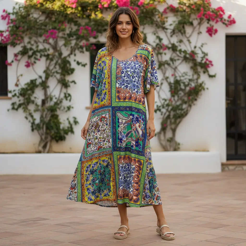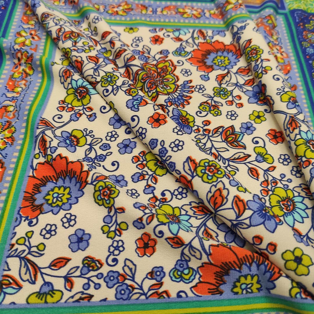 Tessuto Jersey a fantasia dalla mano morbida e fluida si presta alla creazione di capi freschi e comodi da utilizzare nella stagione primavera – estate.
