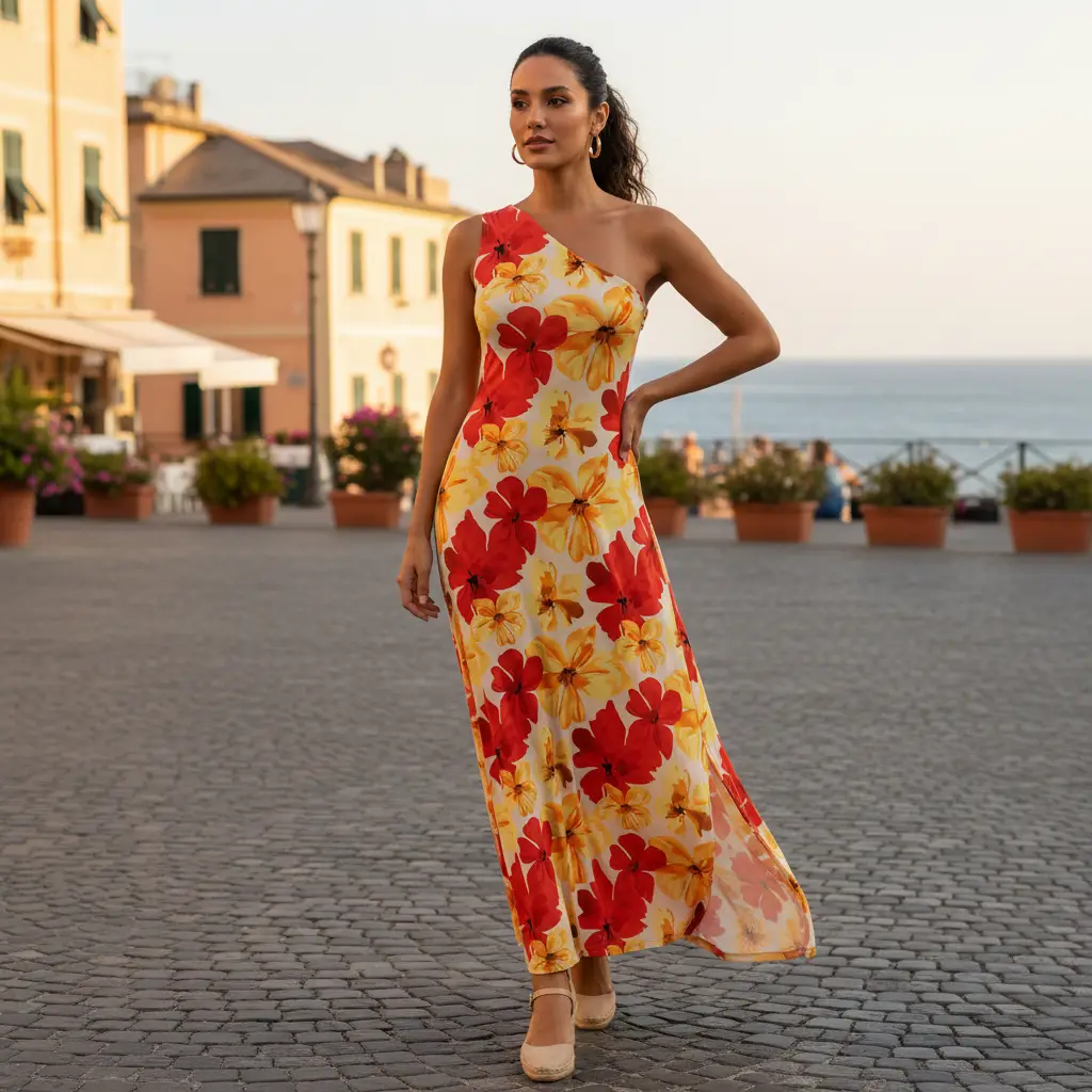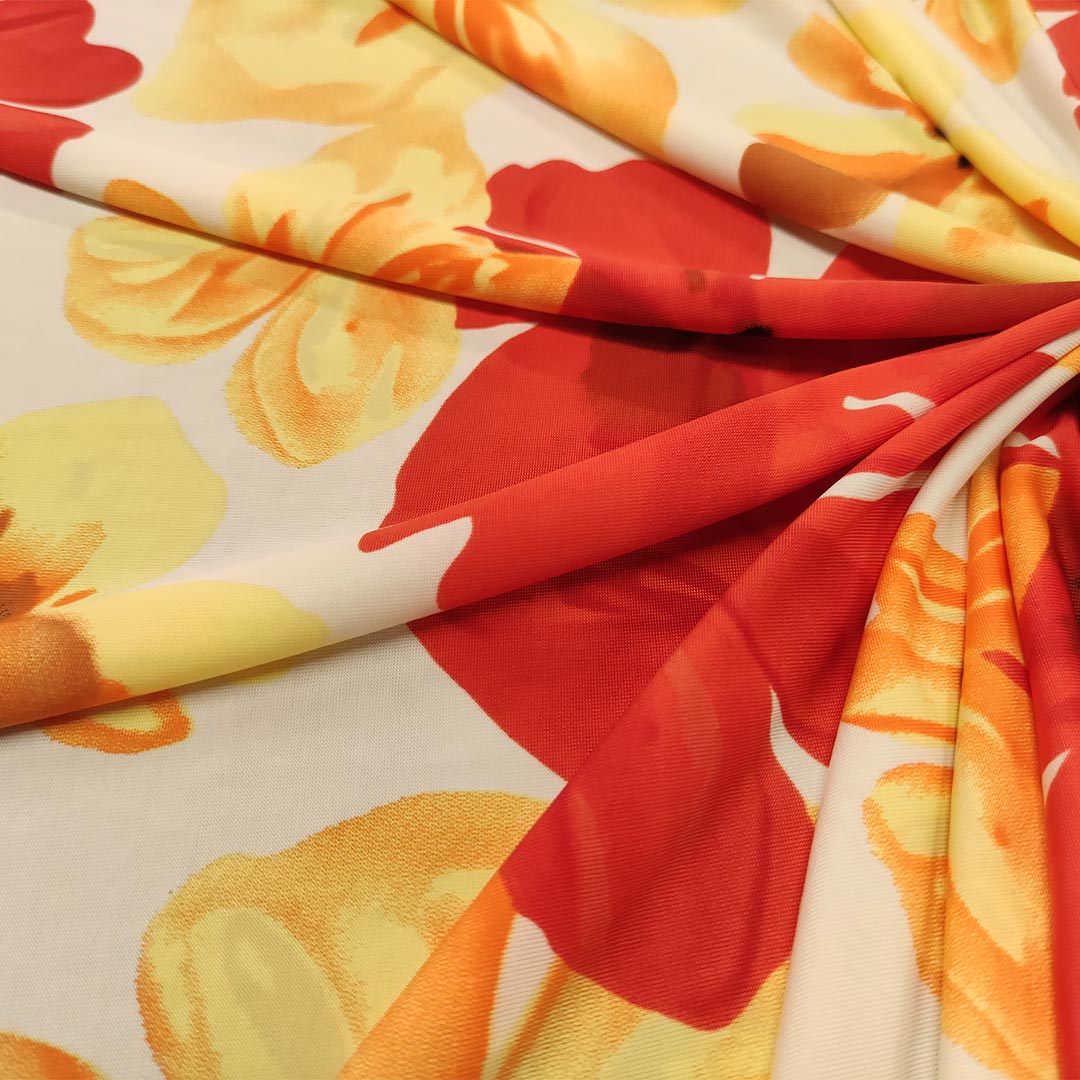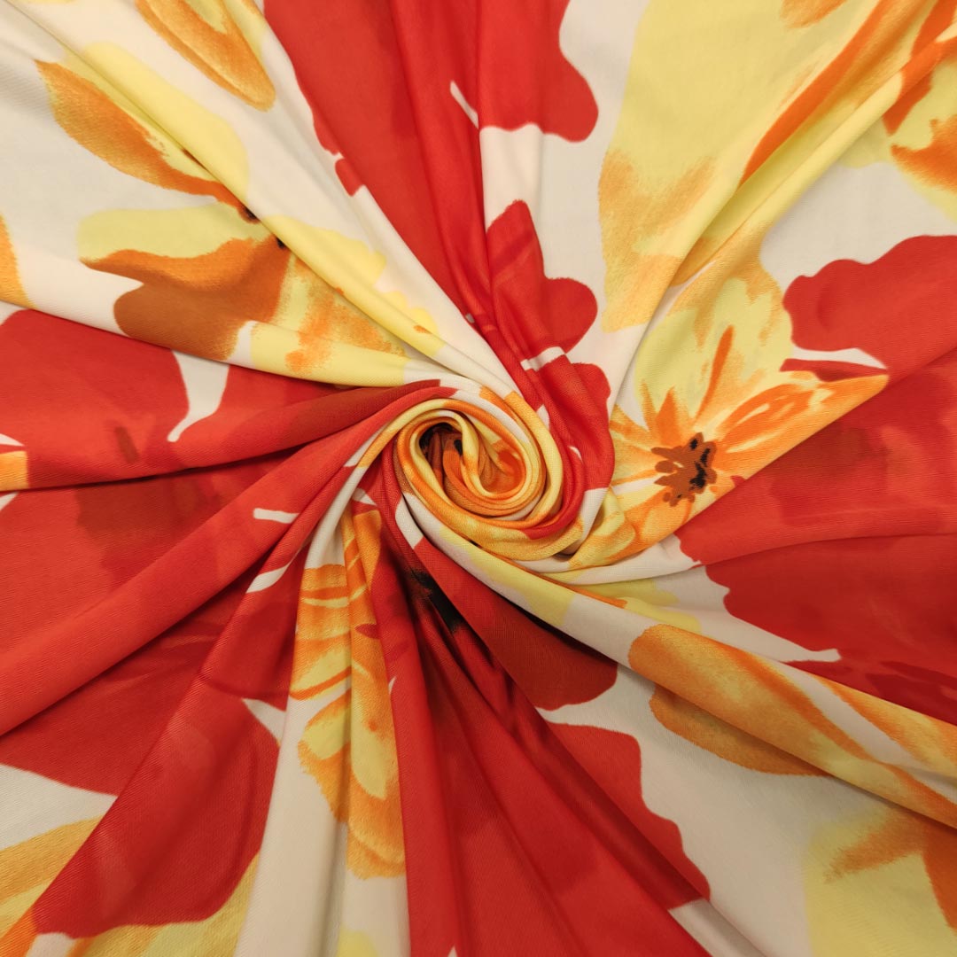 Tessuto Jersey a fantasia motivo floreale beige – rosso – giallo – arancione