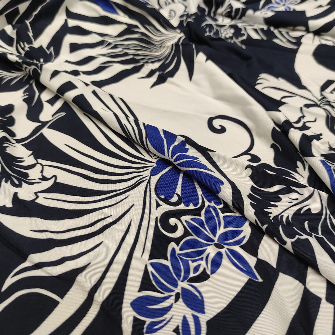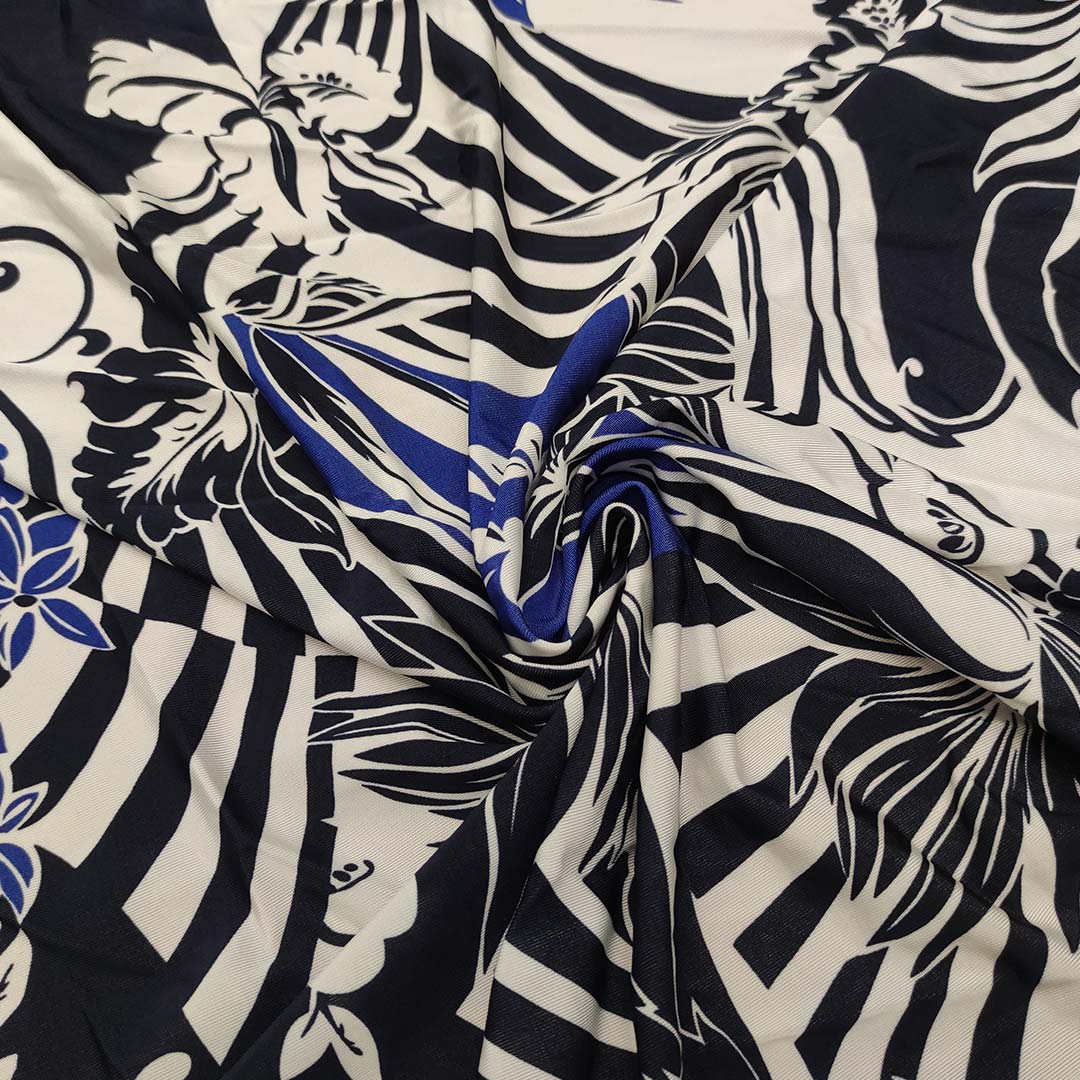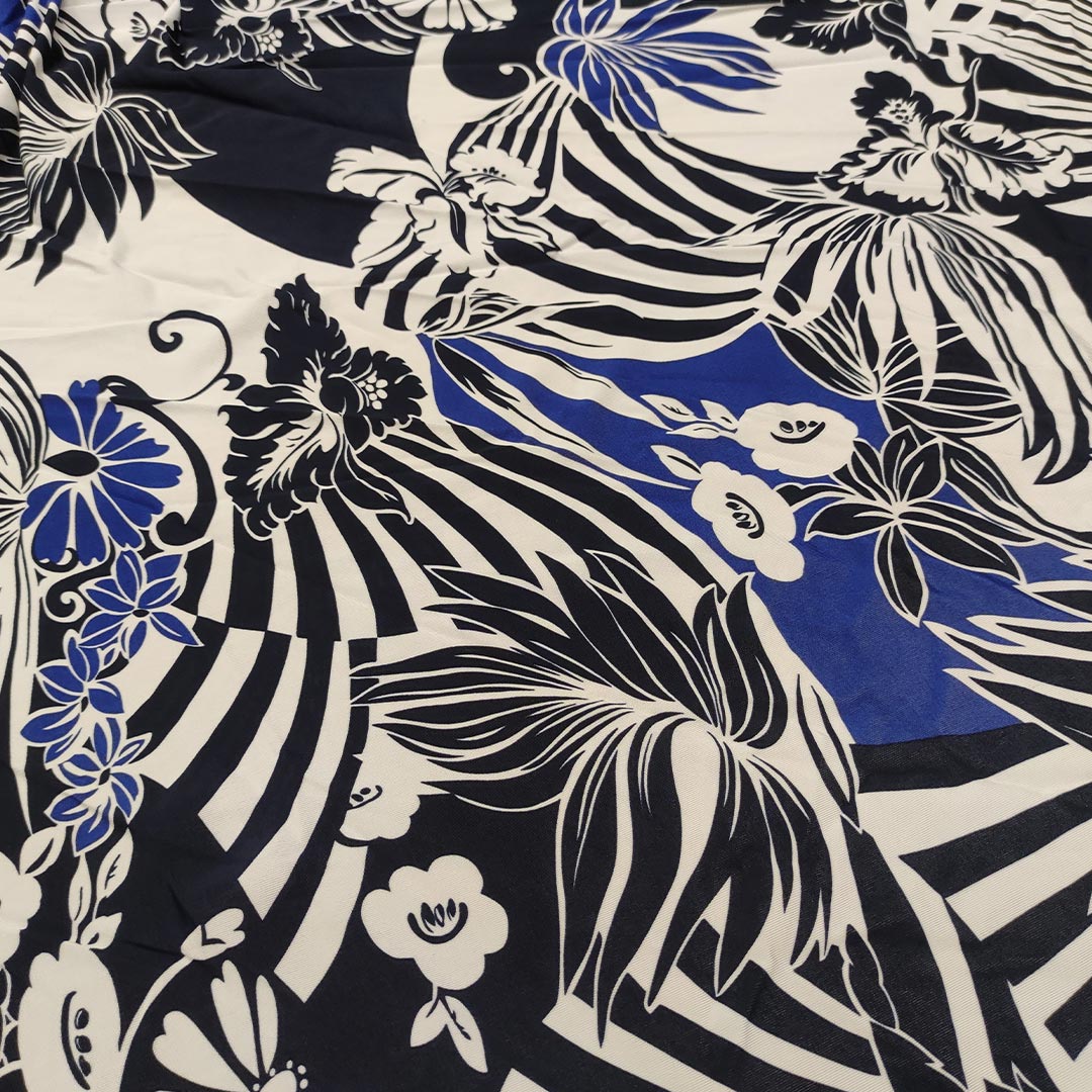 Tessuto Jersey a fantasia dalla mano morbida e fluida si presta alla creazione di capi freschi e comodi da utilizzare nella stagione primavera – estate.