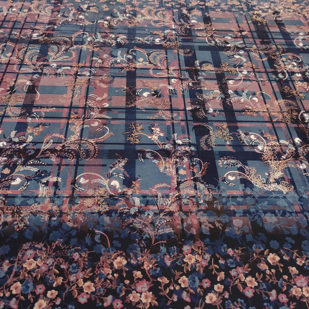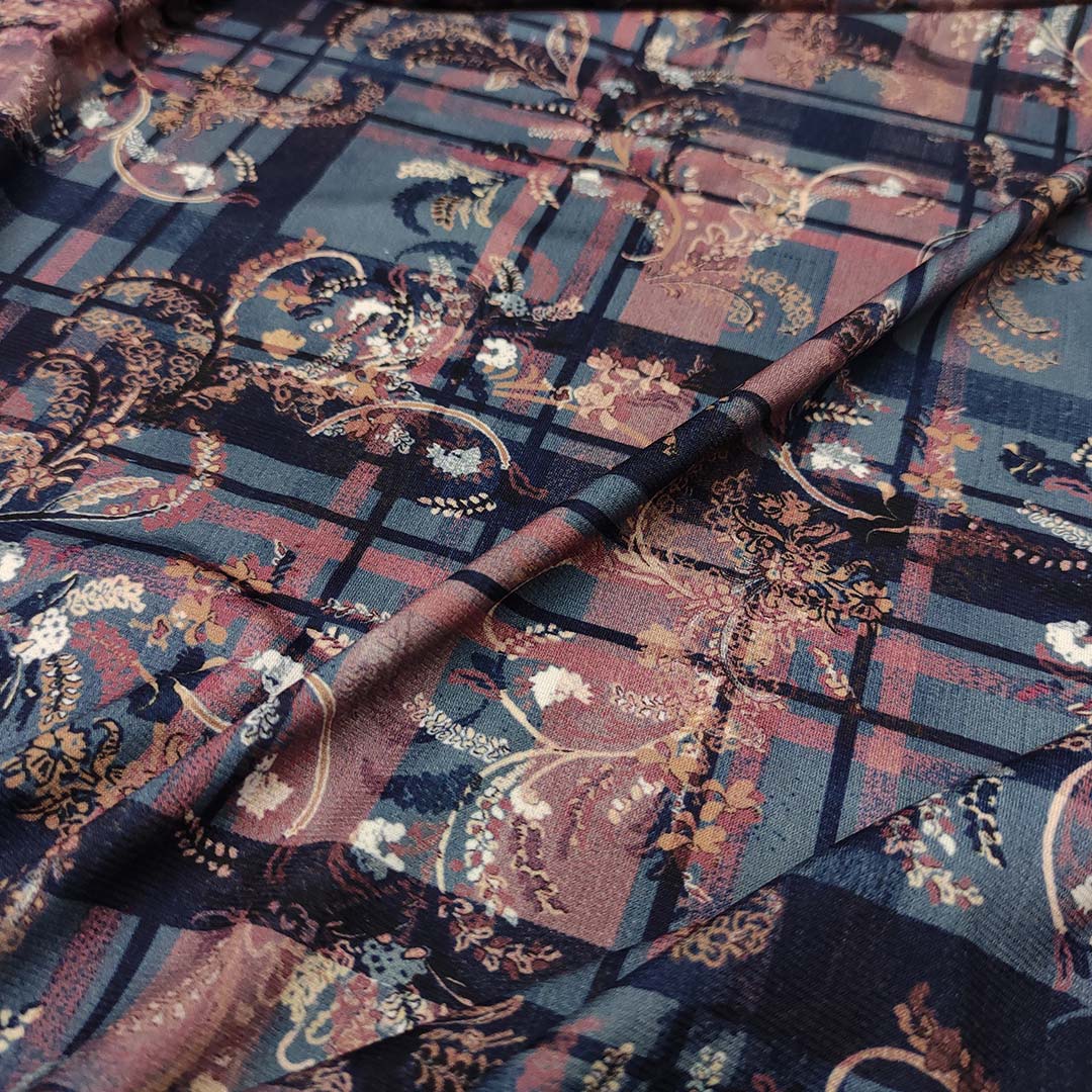 Tessuto Jersey a fantasia motivo floreale blu – cipolla – beige