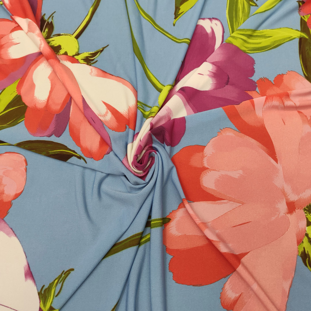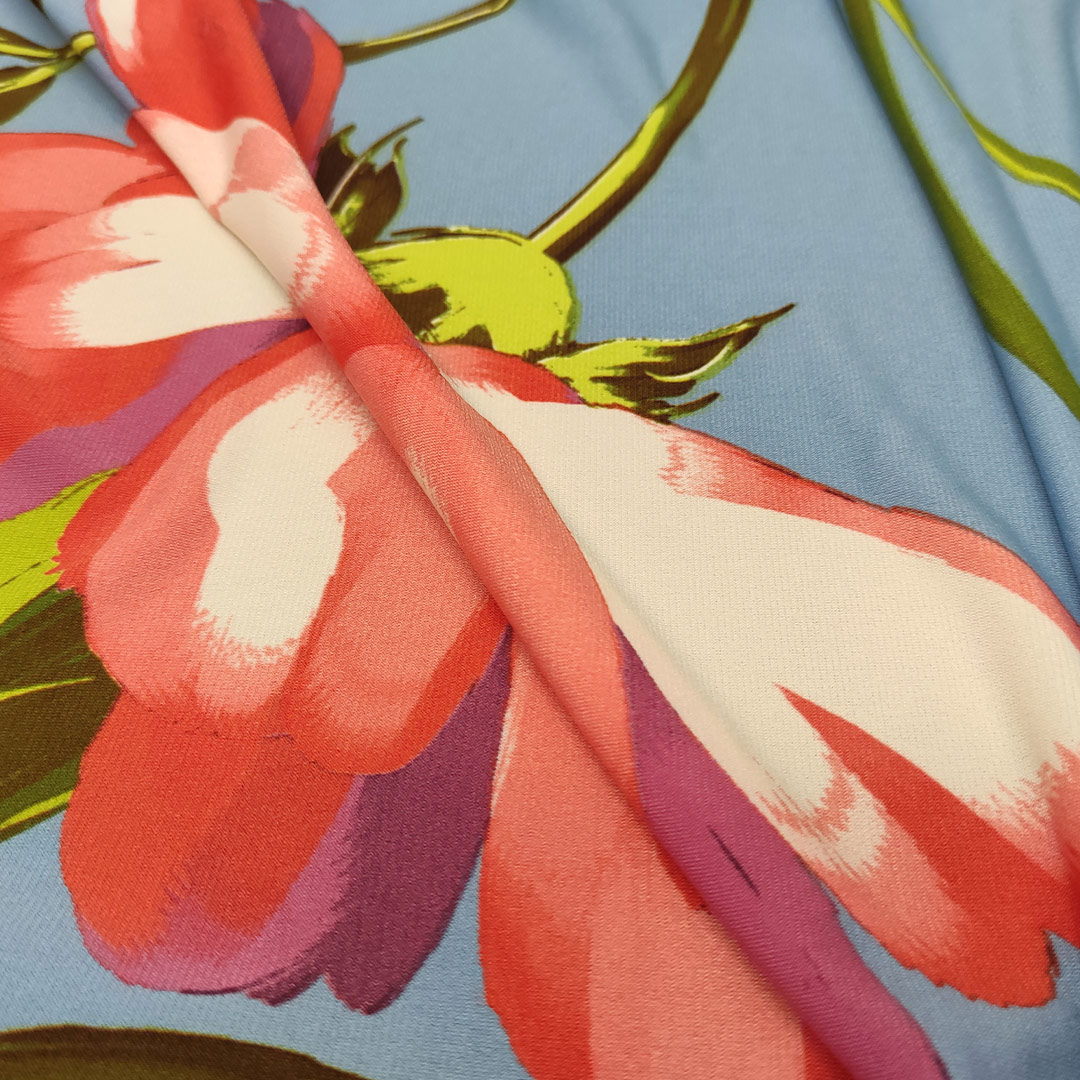 Tessuto Jersey a fantasia dalla mano morbida e fluida si presta alla creazione di capi freschi e comodi da utilizzare nella stagione primavera – estate.
