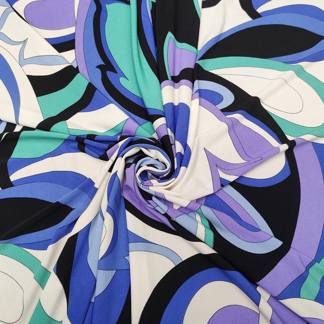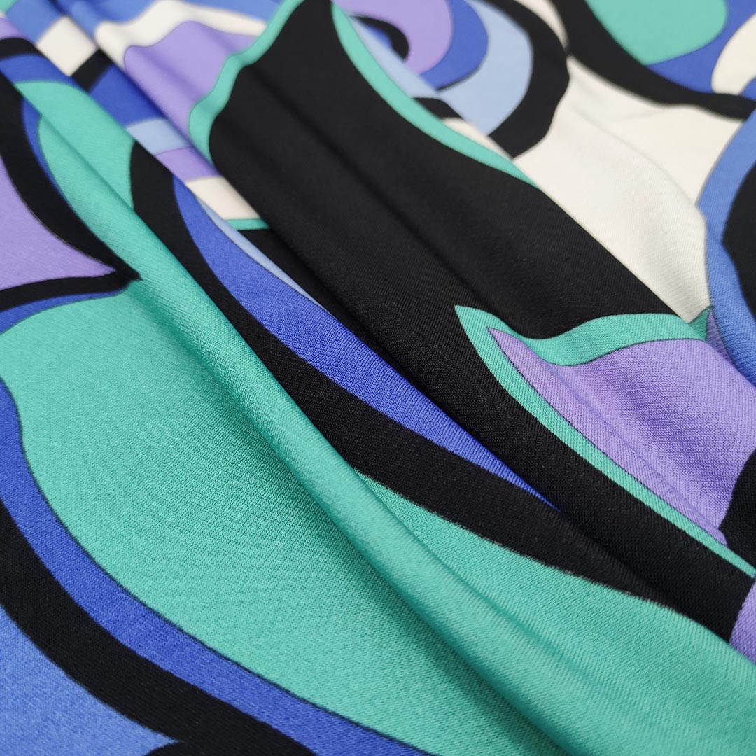 Tessuto Jersey a fantasia dalla mano morbida e fluida si presta alla creazione di capi freschi e comodi da utilizzare nella stagione primavera – estate.