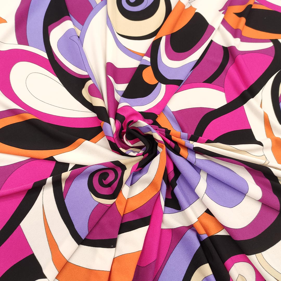 Tessuto Jersey a fantasia dalla mano morbida e fluida si presta alla creazione di capi freschi e comodi da utilizzare nella stagione primavera – estate.
