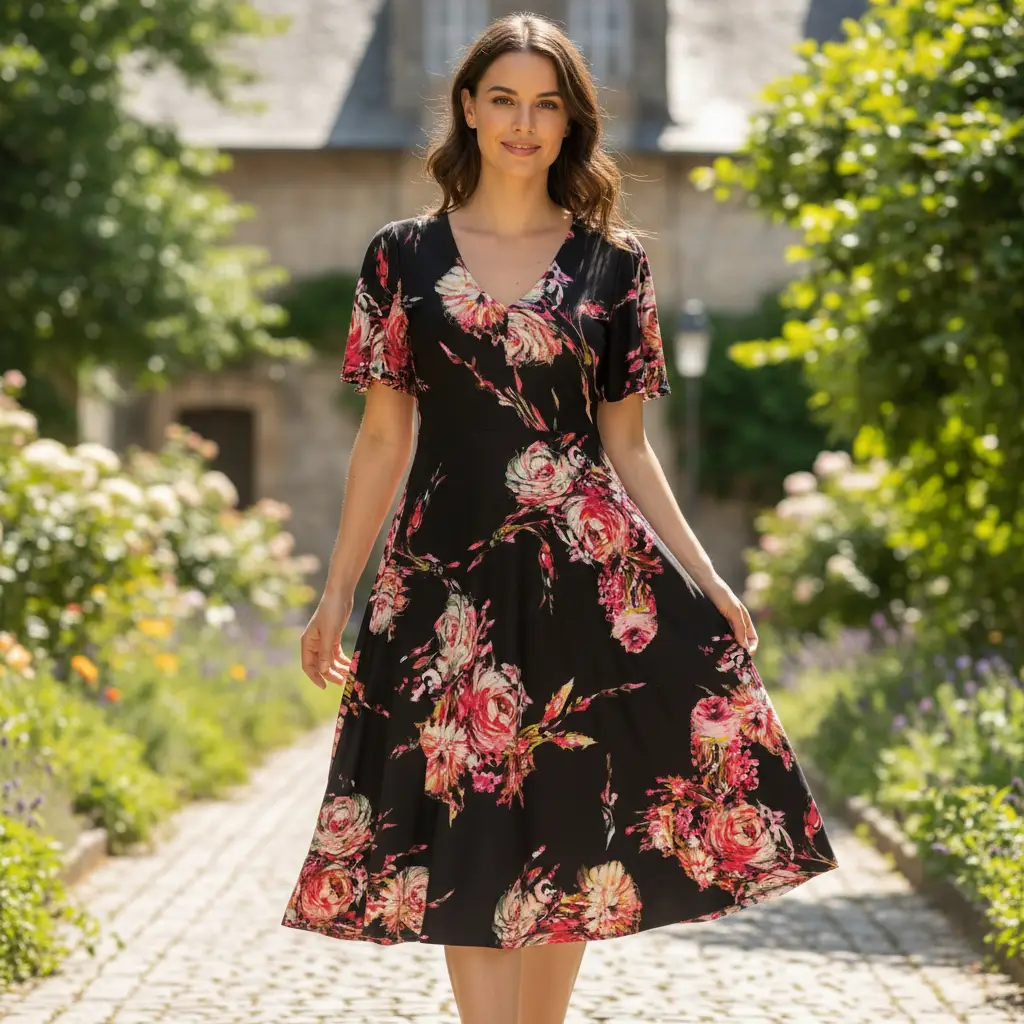 Tessuto Jersey a fantasia dalla mano morbida e fluida si presta alla creazione di capi freschi e comodi da utilizzare nella stagione primavera – estate.
