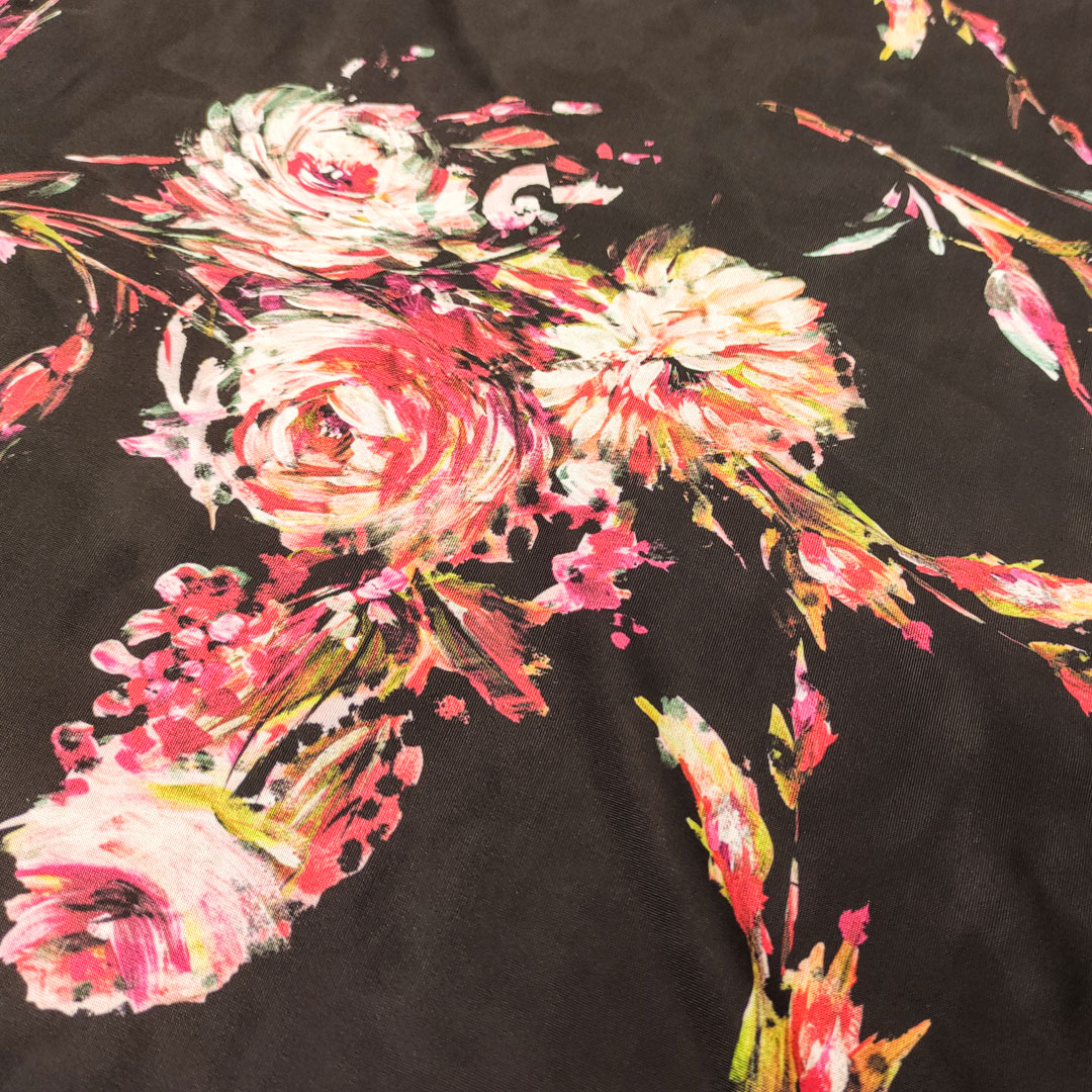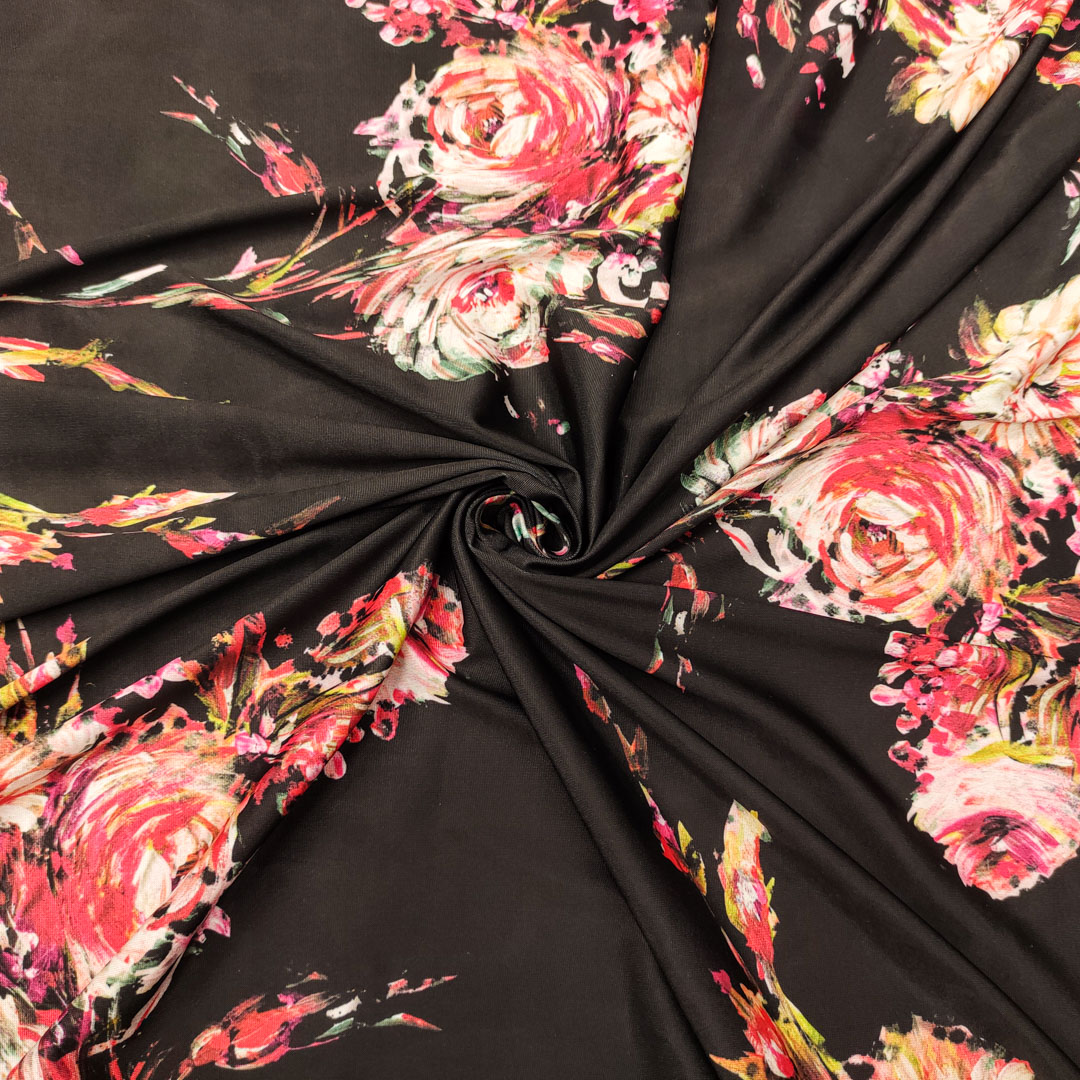 Tessuto Jersey a fantasia motivo floreale nero – fucsia – rosso