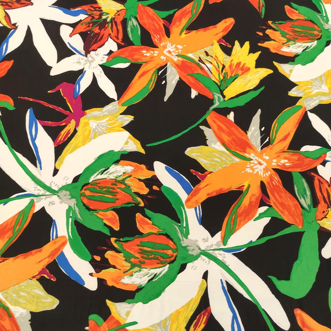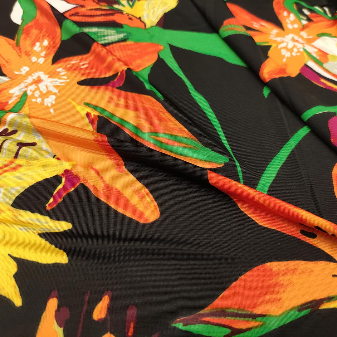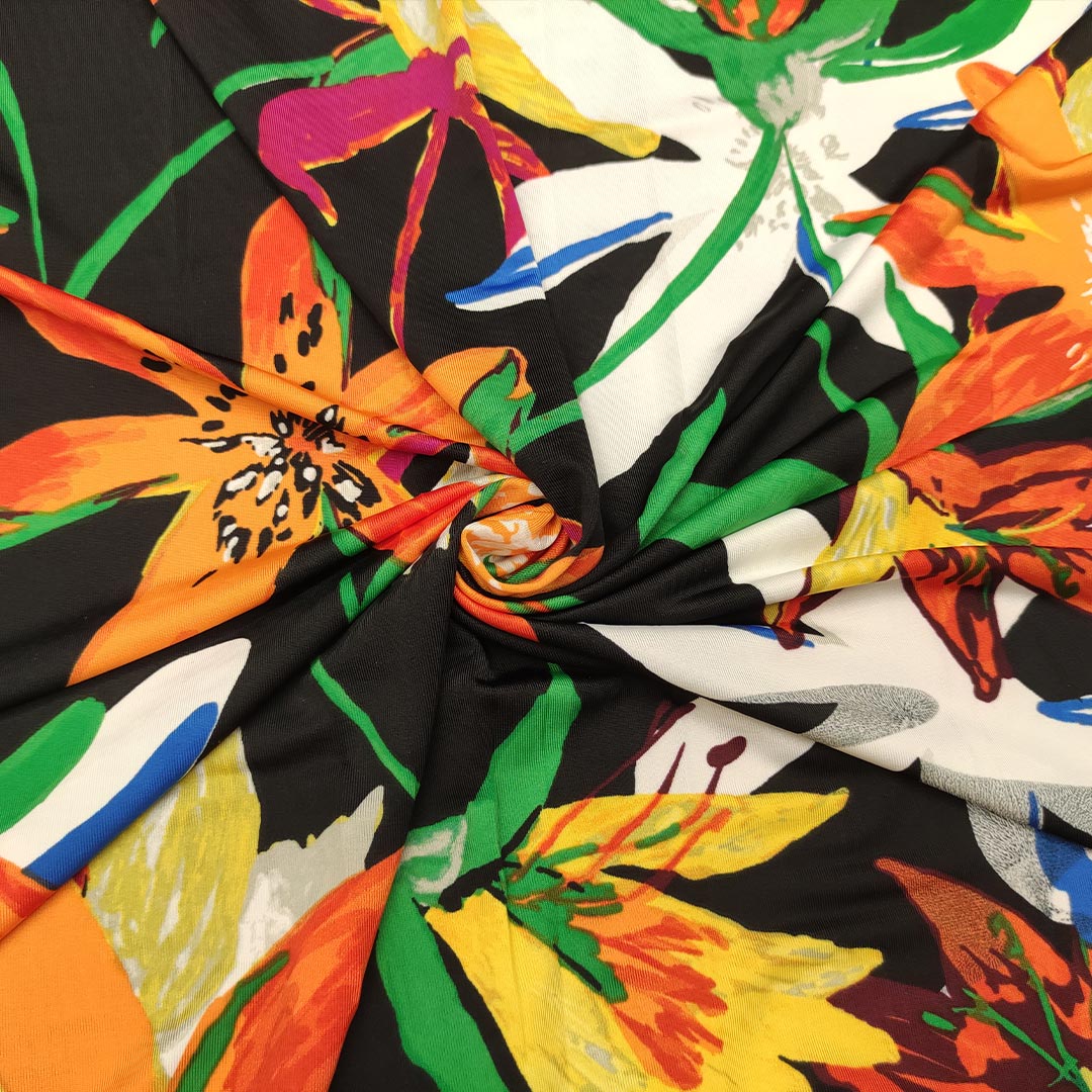 Tessuto Jersey a fantasia motivo floreale nero – verde – arancione – bianco