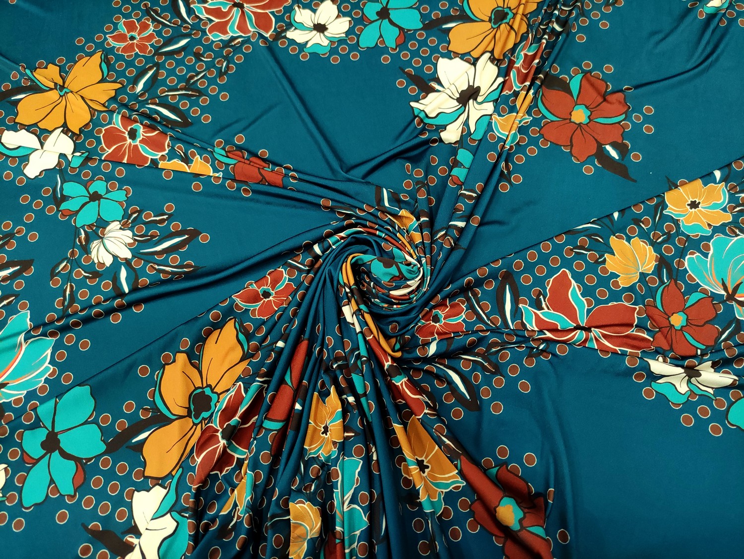 Tessuto Jersey a fantasia dalla mano morbida e fluida si presta alla creazione di capi freschi e comodi da utilizzare nella stagione primavera – estate.
