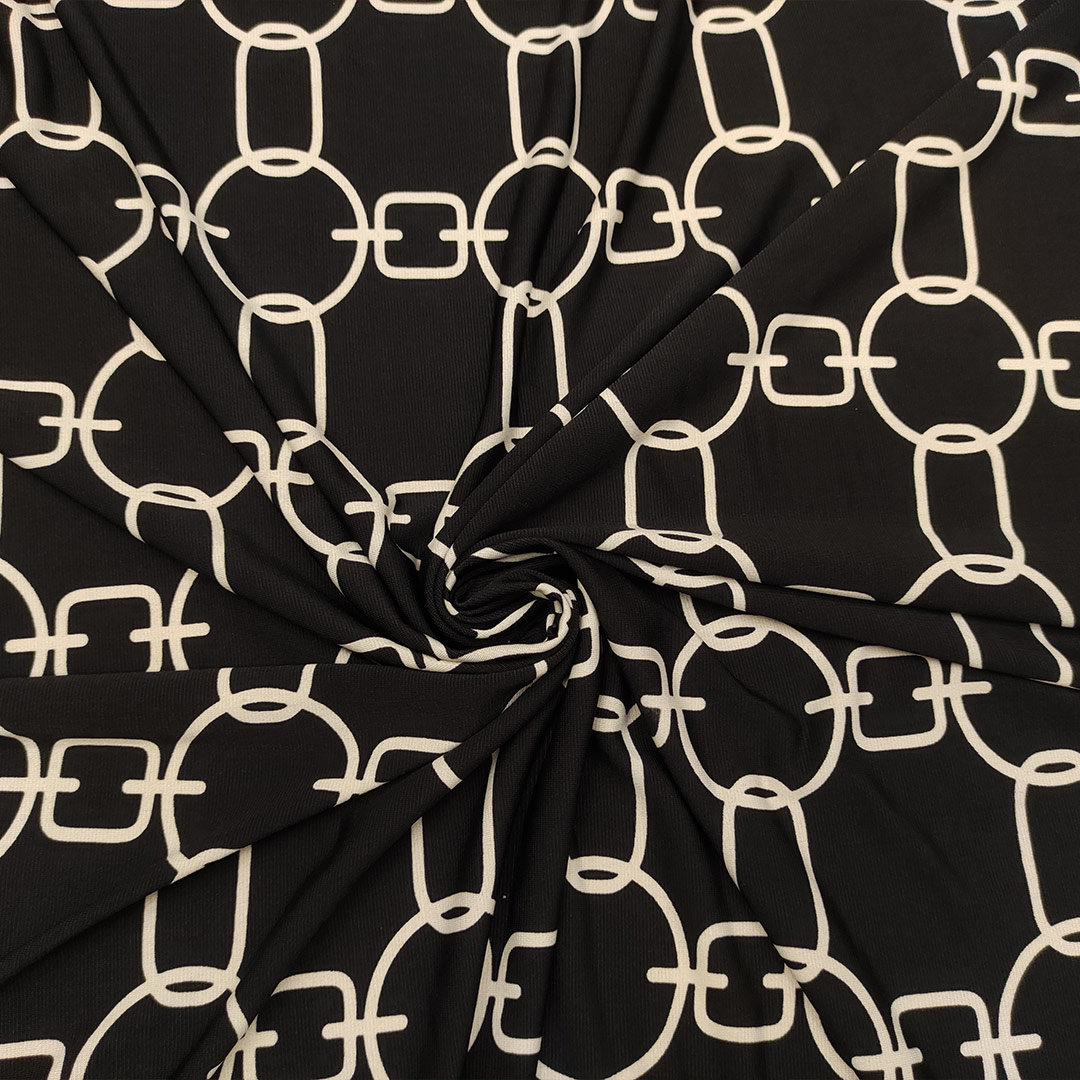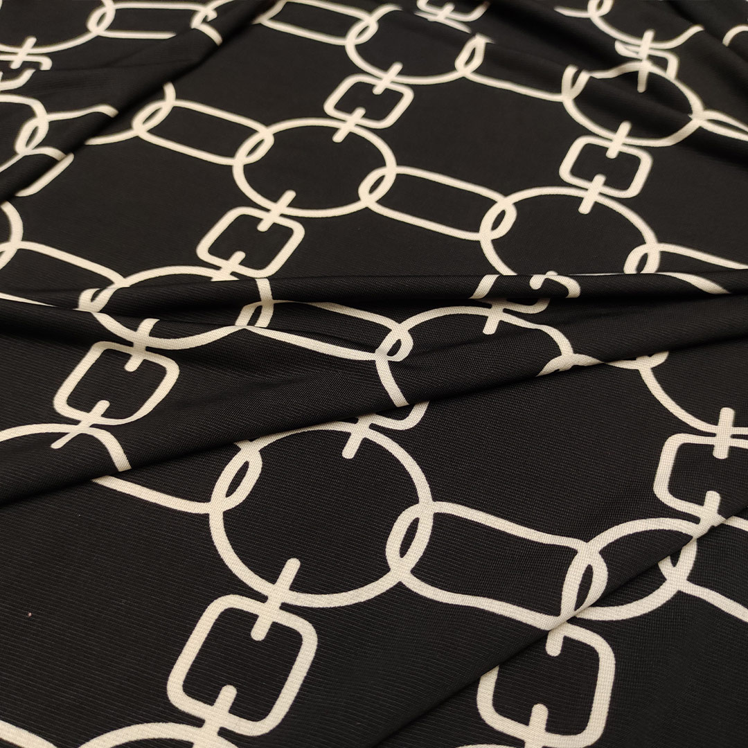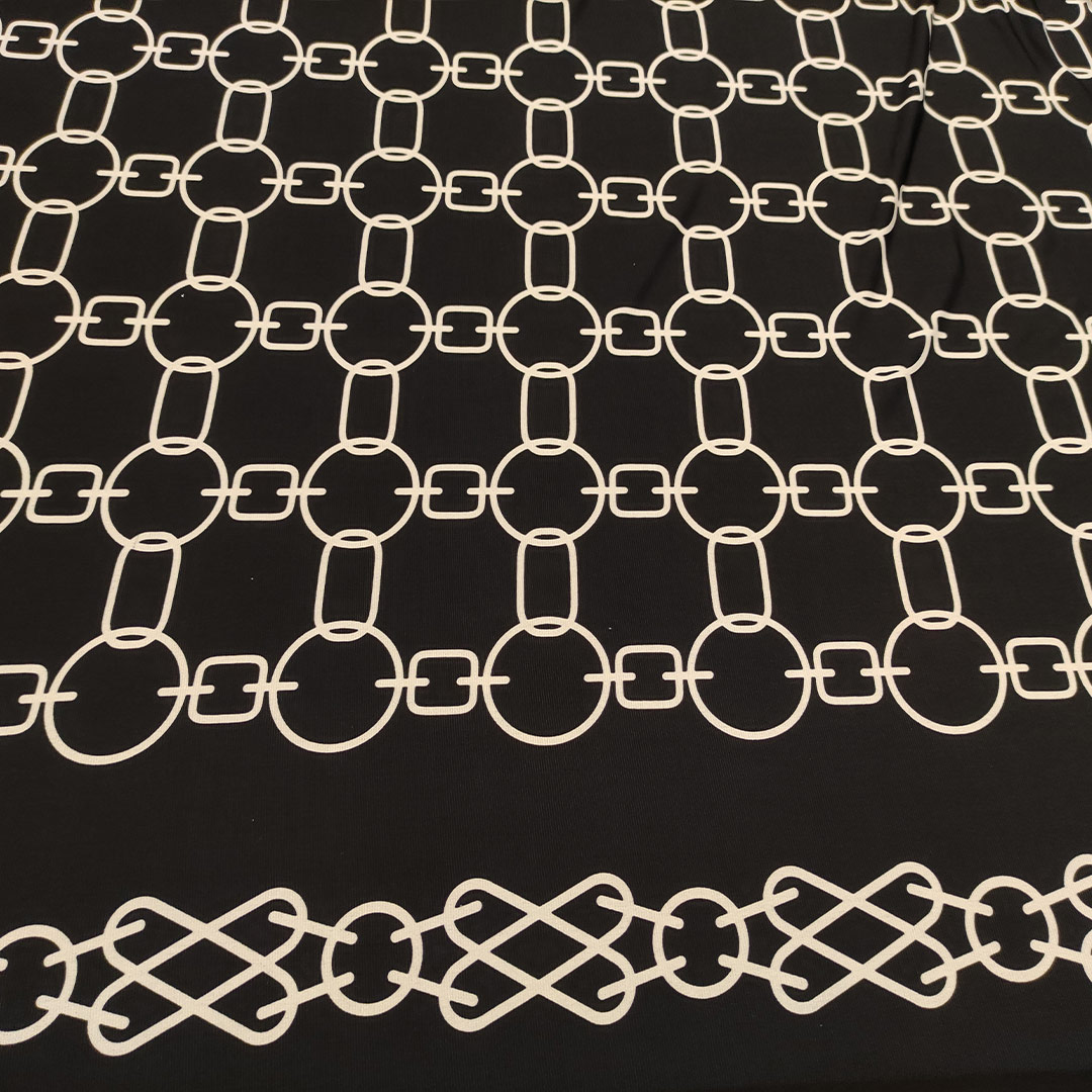 Tessuto Jersey a fantasia motivo geometrico nero – bianco