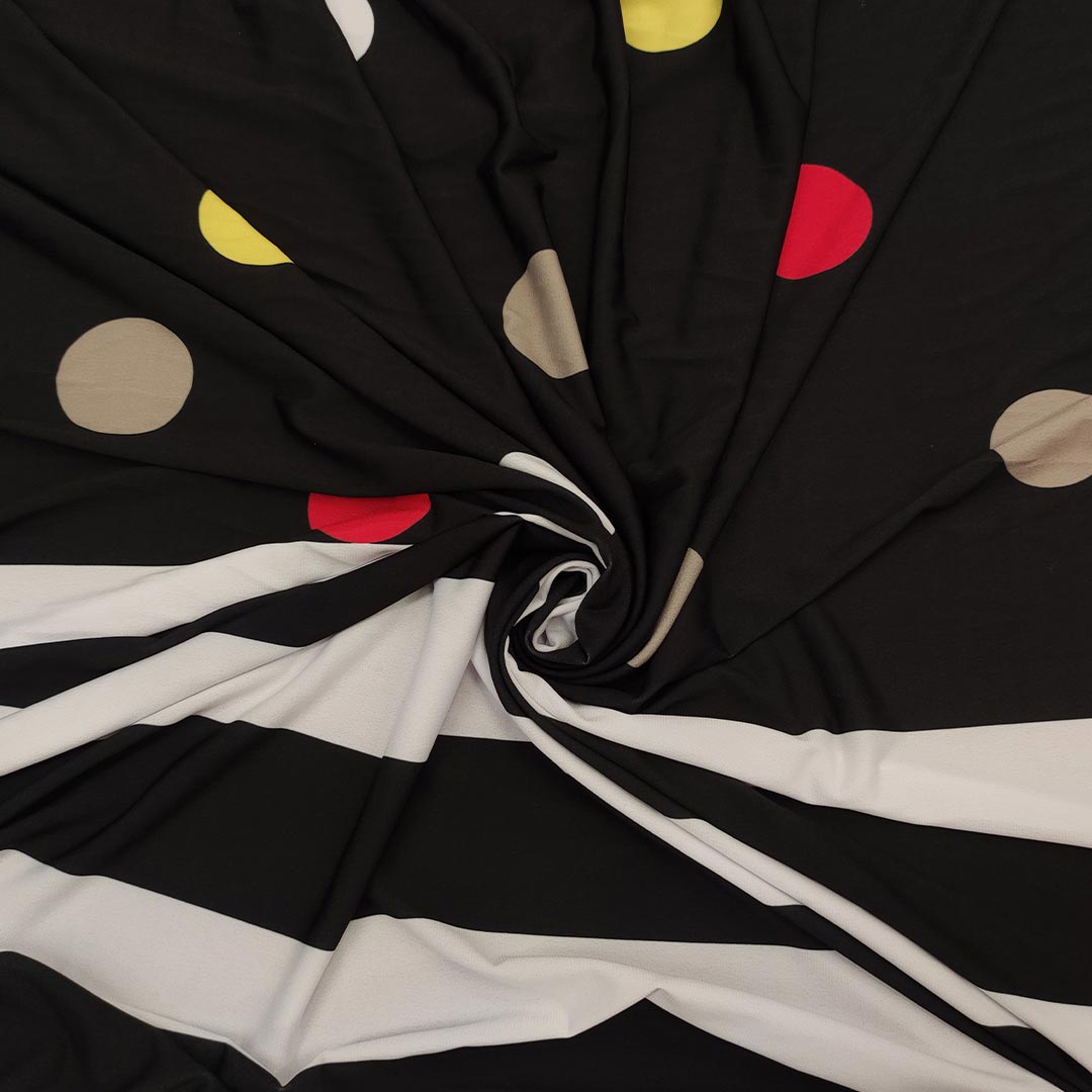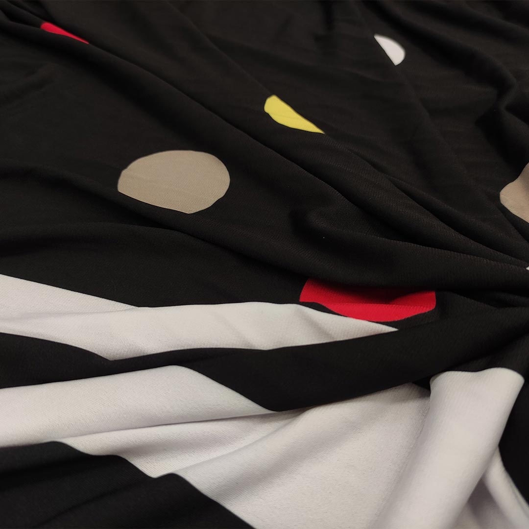 Tessuto Jersey a fantasia motivo pois nero – bianco – giallo – rosso