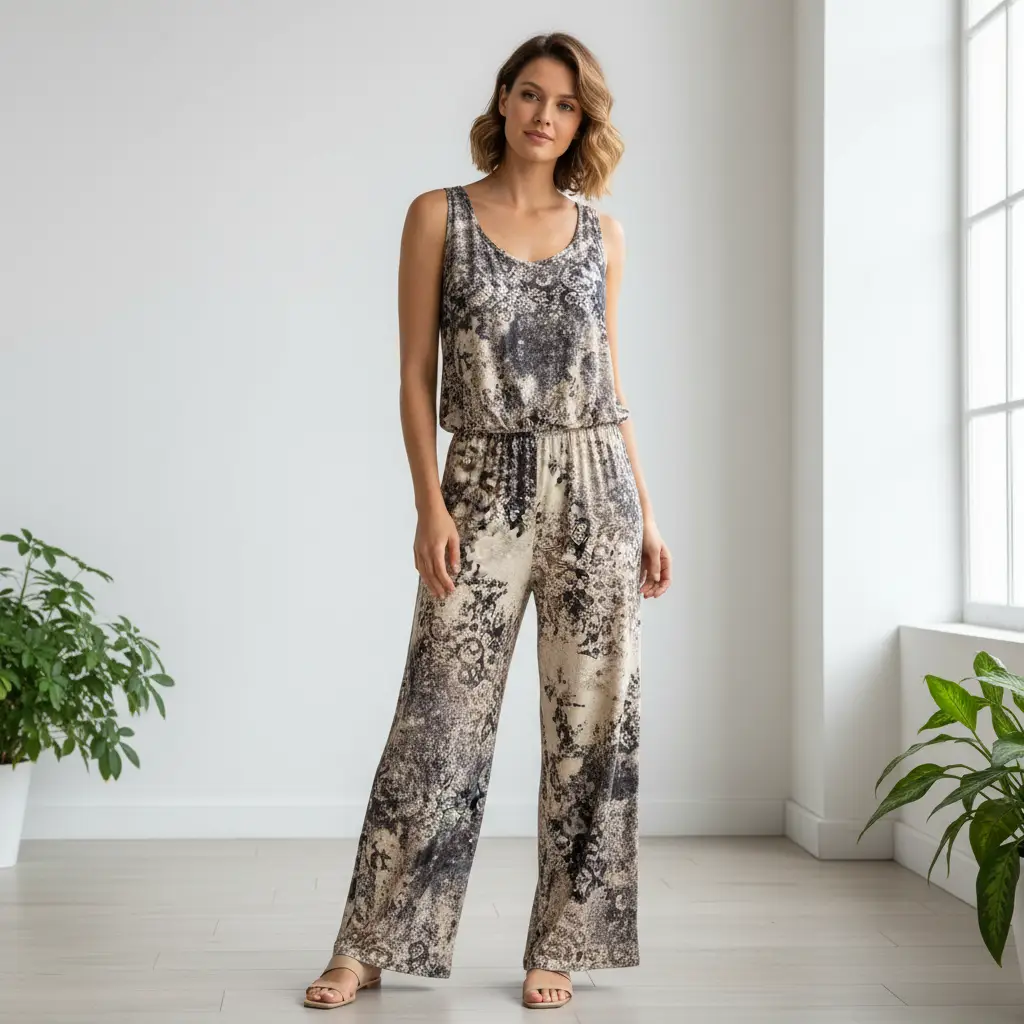 Tessuto Jersey di cotone a fantasia dalla mano morbida e fluida si presta alla creazione di capi freschi e comodi da utilizzare nella stagione primavera – estate.