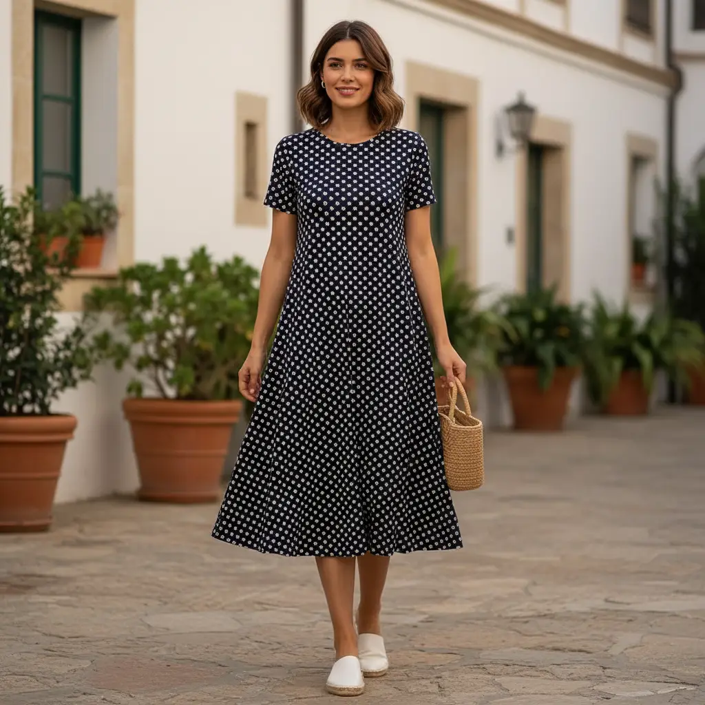 Tessuto Jersey di cotone a fantasia dalla mano morbida e fluida si presta alla creazione di capi freschi e comodi da utilizzare nella stagione primavera – estate.