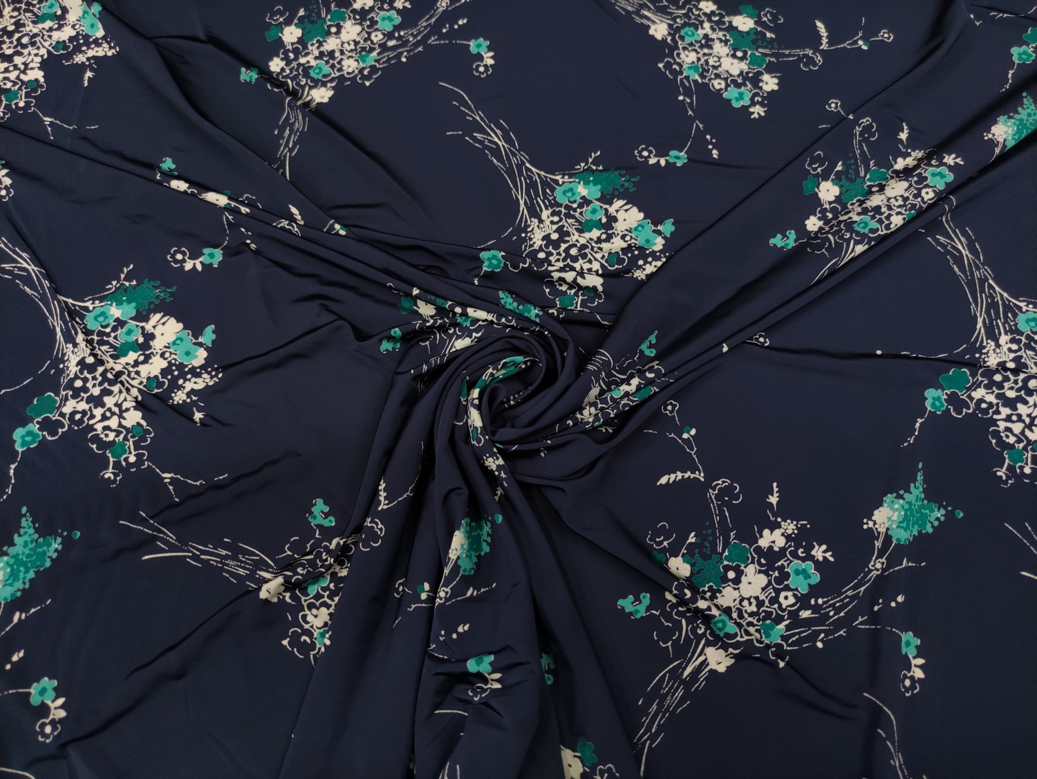 Tessuto jersey di viscosa a fantasia motivo floreale blu