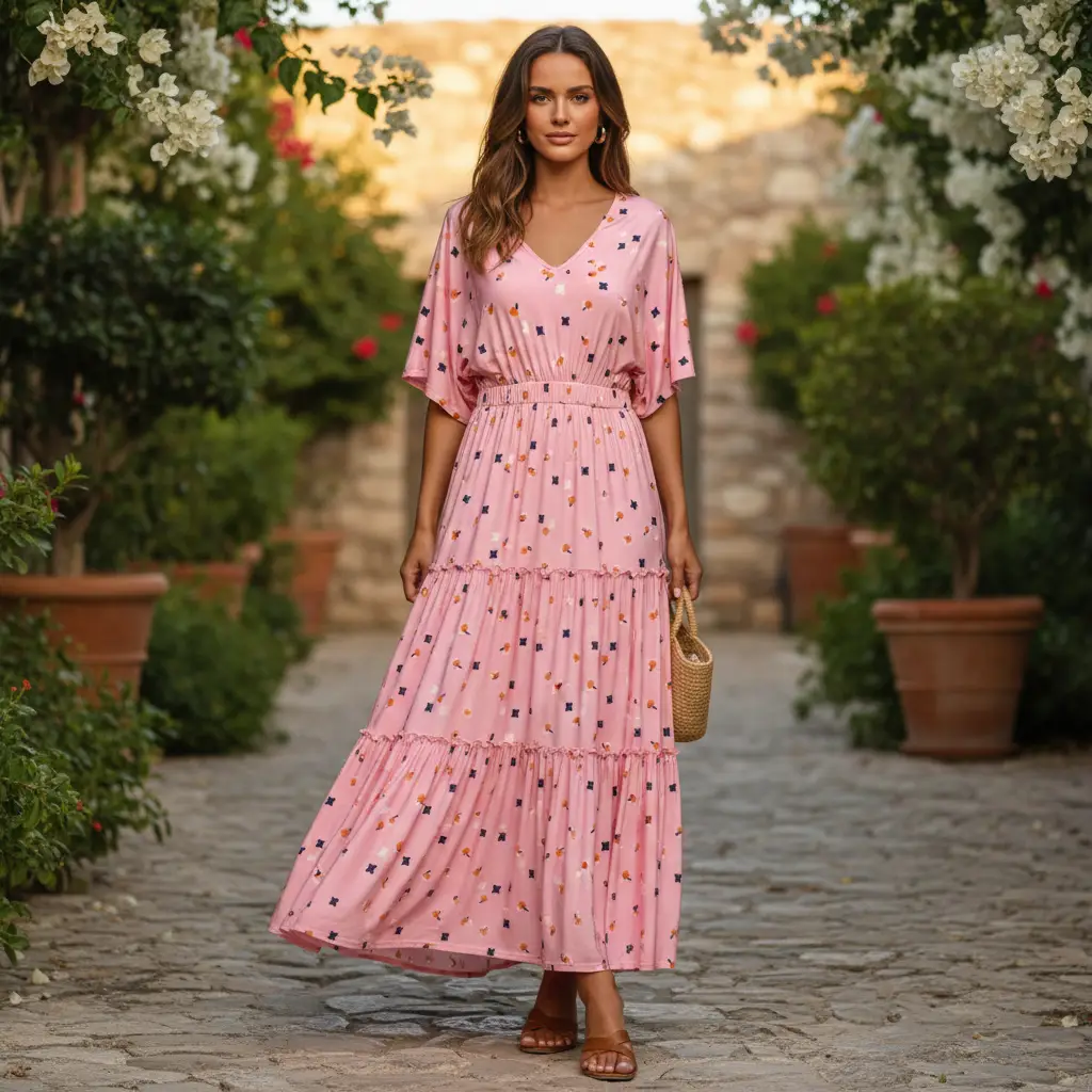 Tessuto Jersey di viscosa a fantasia dalla mano morbida e fluida si presta alla creazione di capi freschi e comodi da utilizzare nella stagione primavera – estate.