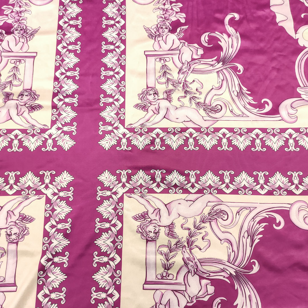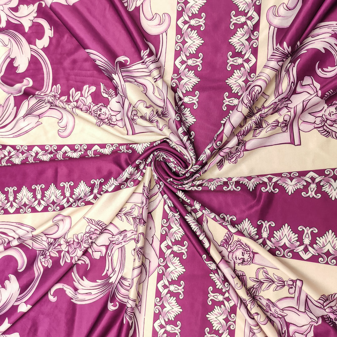 Tessuto Jersey lucido a fantasia motivo floreale barocco beige – orchidea