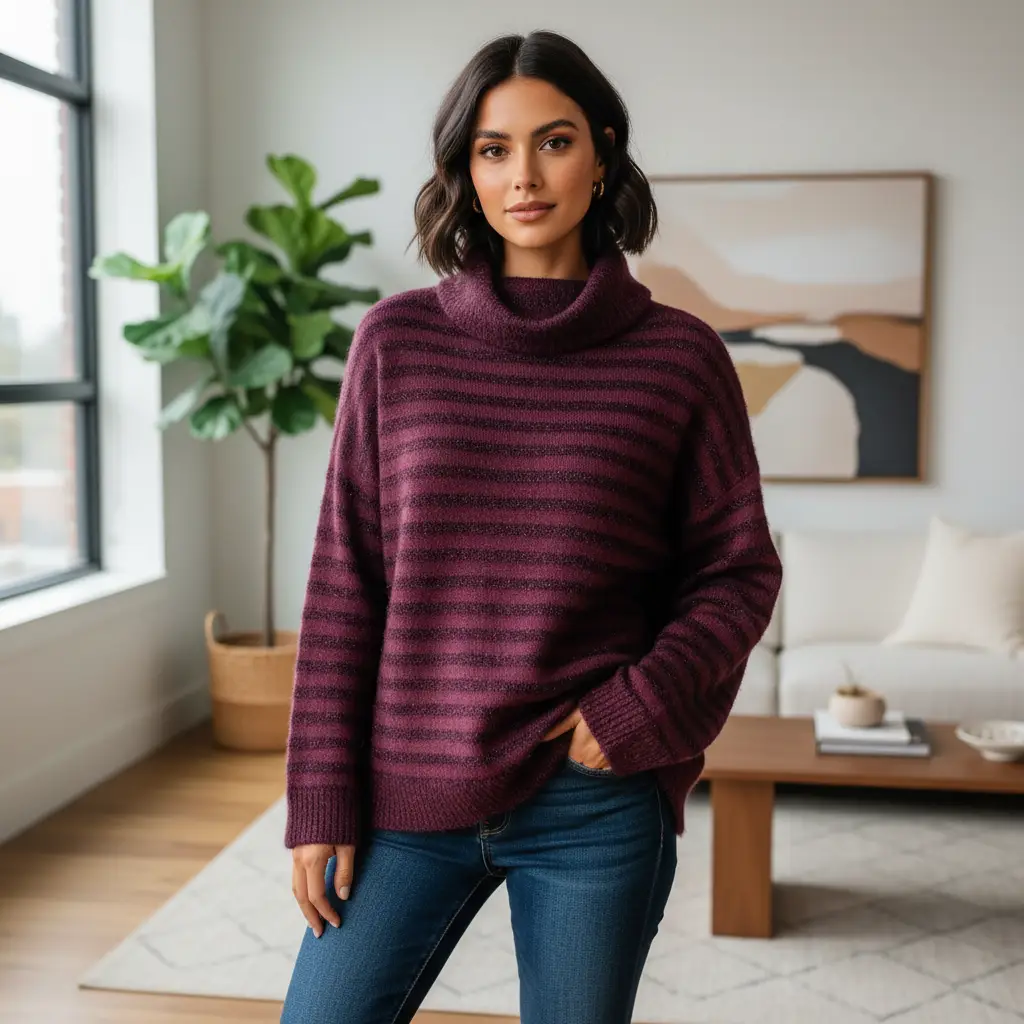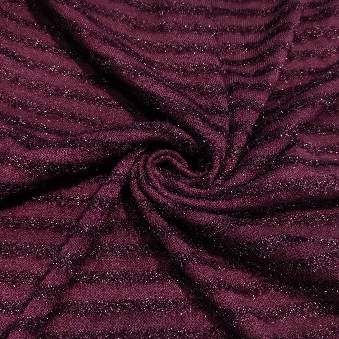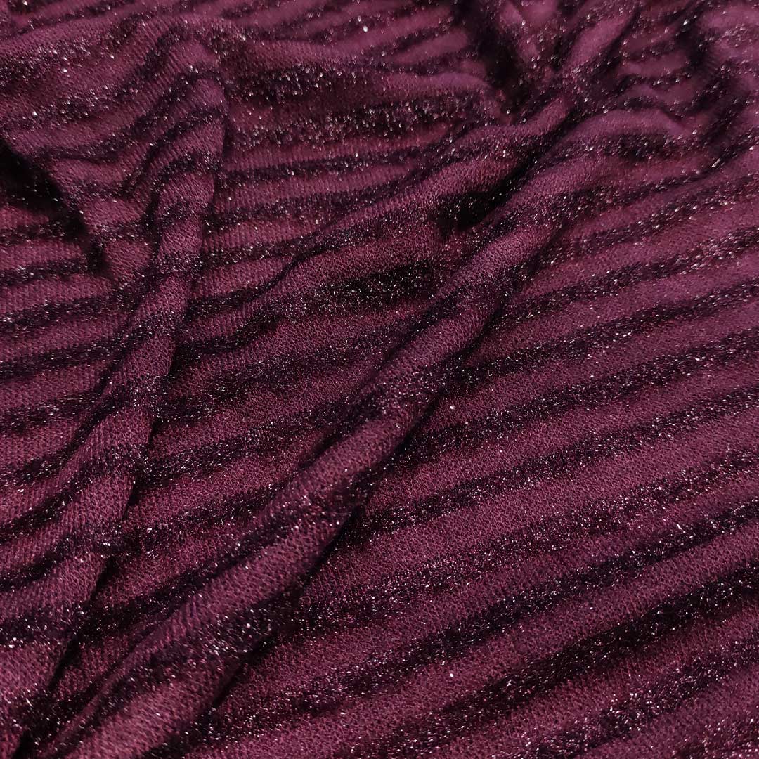 Tessuto Maglia Mano angoretta a pelucchi motivo rigato borgogna