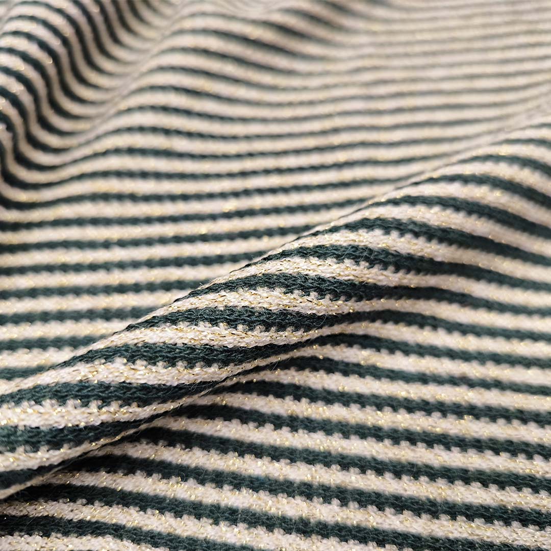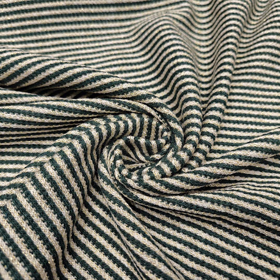 Tessuto Maglia Mano Lana a coste lurex verde bottiglia – oro