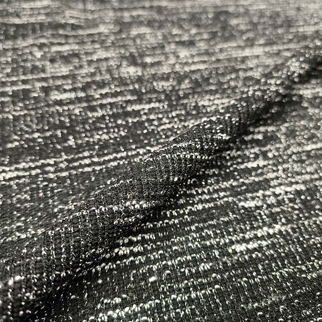 Tessuto Maglia Mano Lana motivo tweed lurex nero – argento – bianco