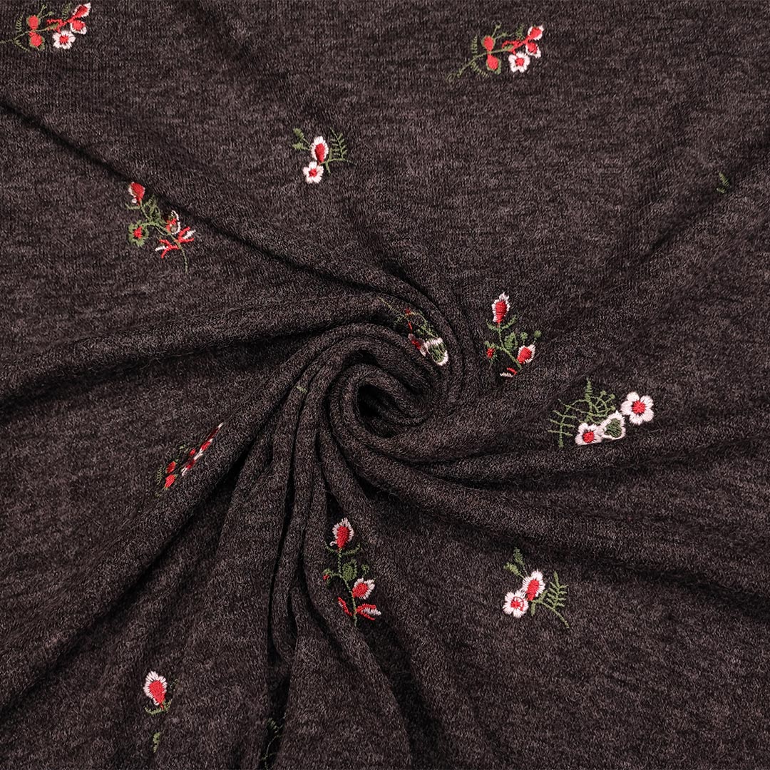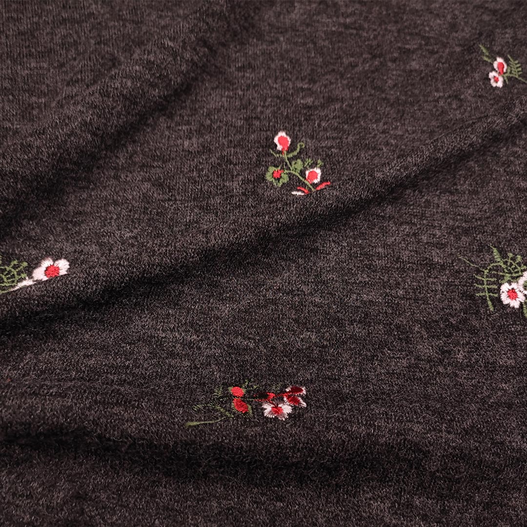 Tessuto Maglia Mano lana ricamata motivo floreale, tessuto in maglia dalla mano morbida, elasticizzata e calda, ideale per realizzare capi da utilizzare nella stagione autunno – inverno come: pullover, maxi pull, maglie ed abiti.