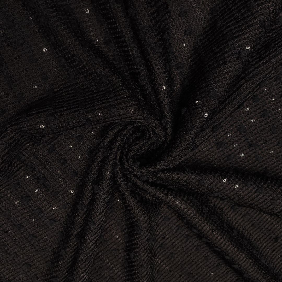 Tessuto Maglia Mano Lana ricamato con paillettes tinta nero