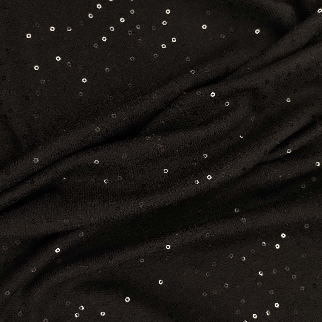 Tessuto Maglia Mano Lana ricamato con paillettes tinta nero