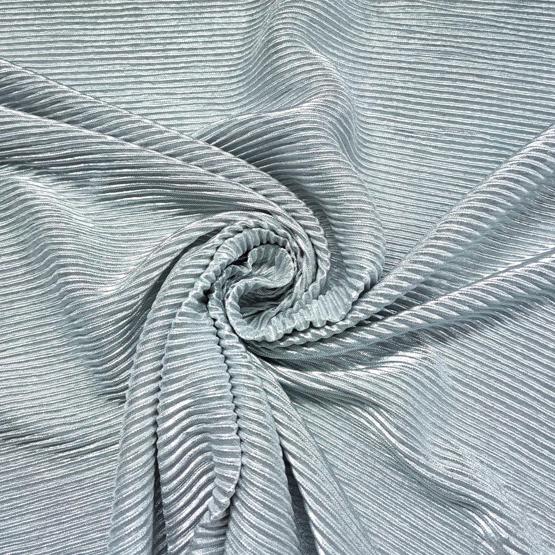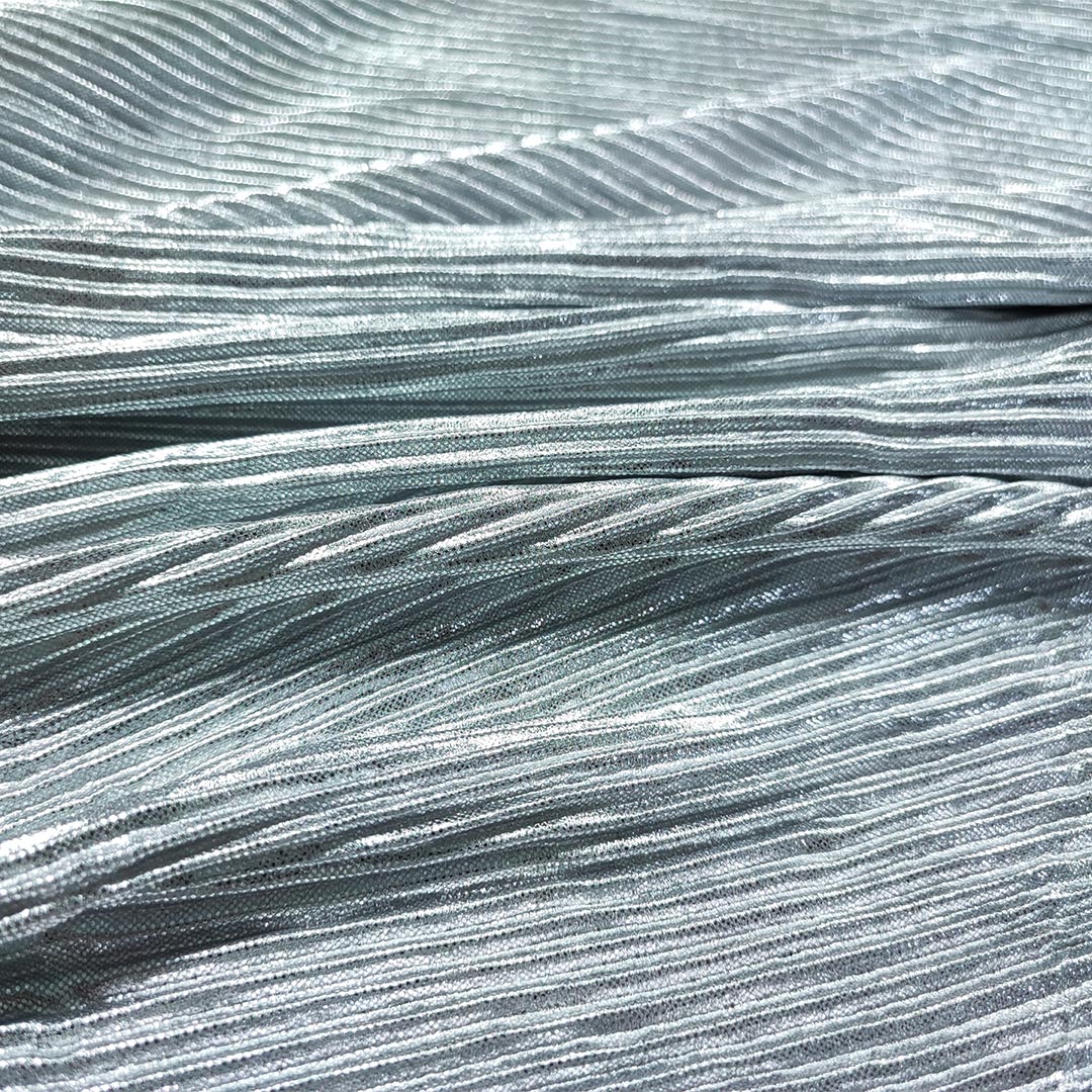 Tessuto Jersey plissè, dalla mano morbida e leggera, ideale per realizzare capi lucenti e scintillanti come: stole, abiti, spolverini e gonne.