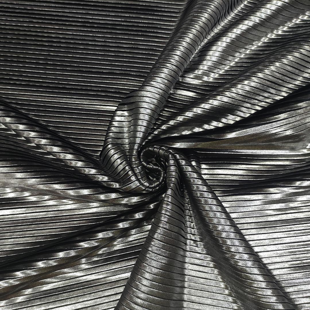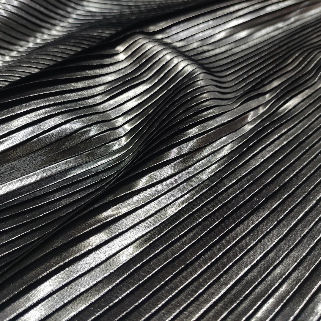Tessuto Jersey spalmato effetto plissè,dalla mano morbida e leggera, ideale per realizzare capi lucenti e scintillanti come: stole, abiti, spolverini e gonne.