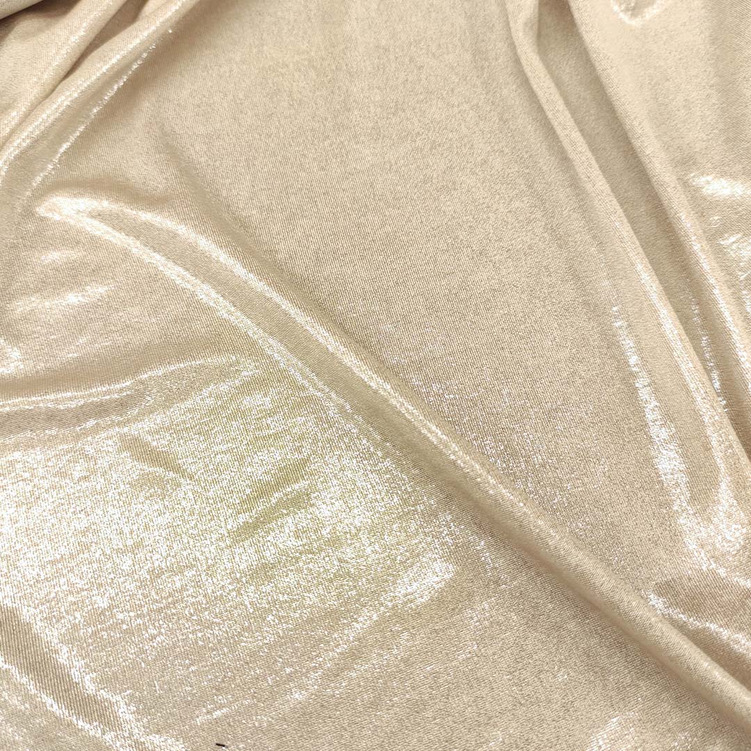 Tessuto Jersey spalmato, dalla mano morbida e leggera, ideale per realizzare capi lucenti e scintillanti come: stole, abiti, spolverini e gonne.