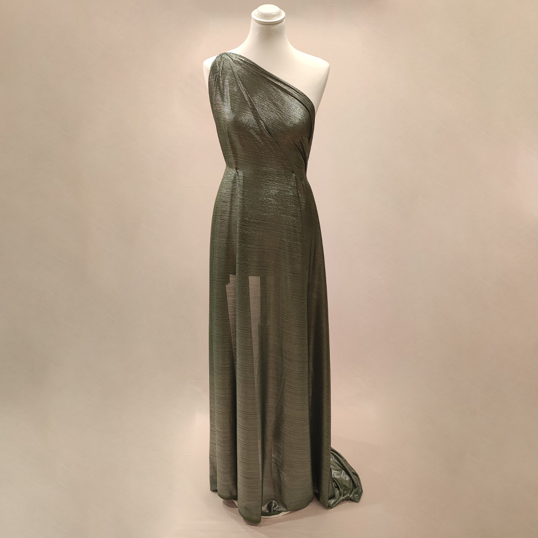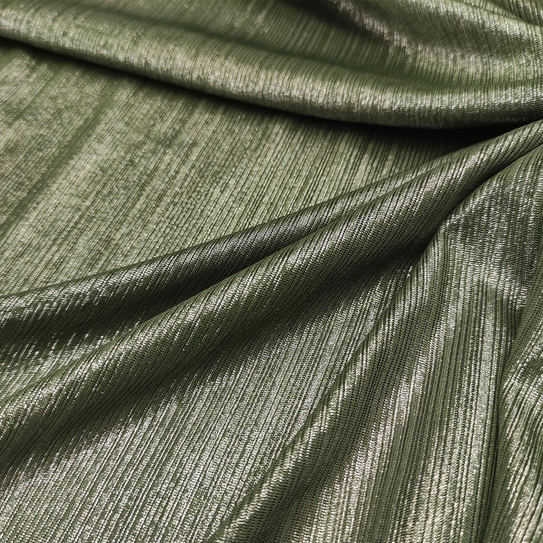 Tessuto Jersey spalmato dalla mano morbida e leggera, ideale per realizzare capi lucenti e scintillanti come: stole, abiti, spolverini e gonne.