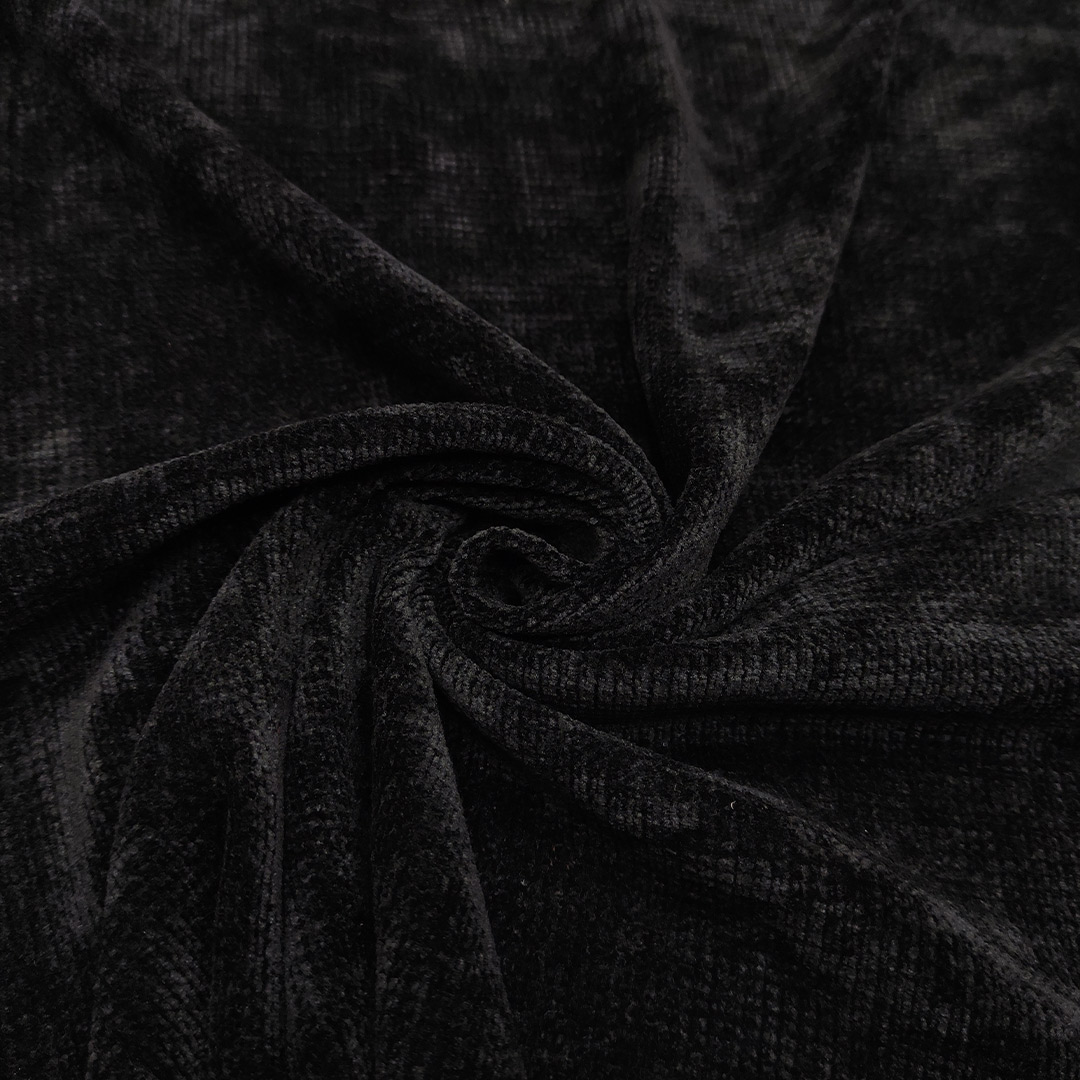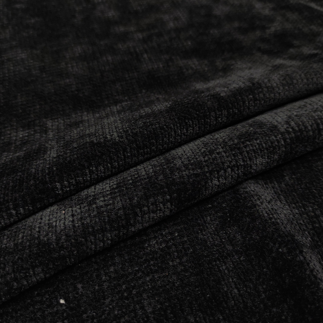 Tessuto maglia a coste mano ciniglia tinta unita nero