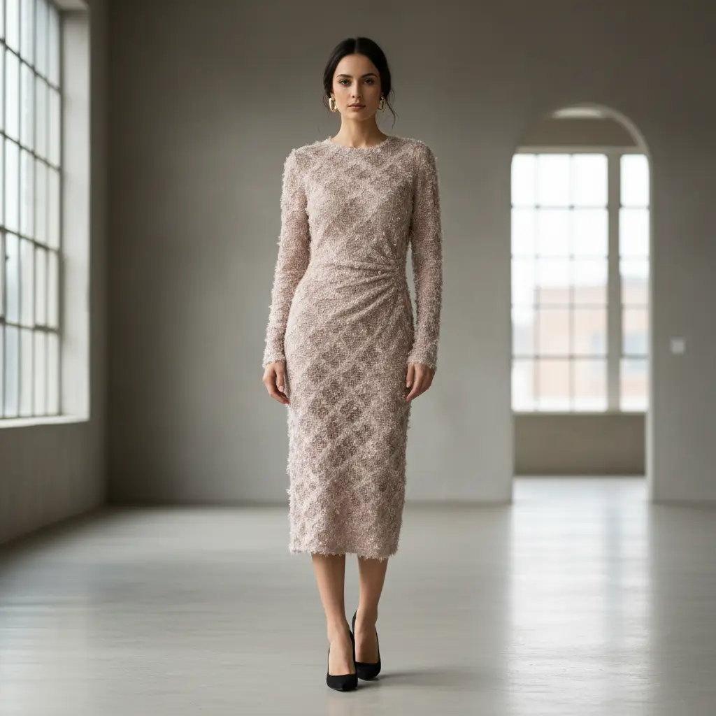 Tessuto maglia a rete lamè motivo geometrico ideale per realizzare capi luccicanti e raffinati da utilizzare nella stagione autunno – inverno.