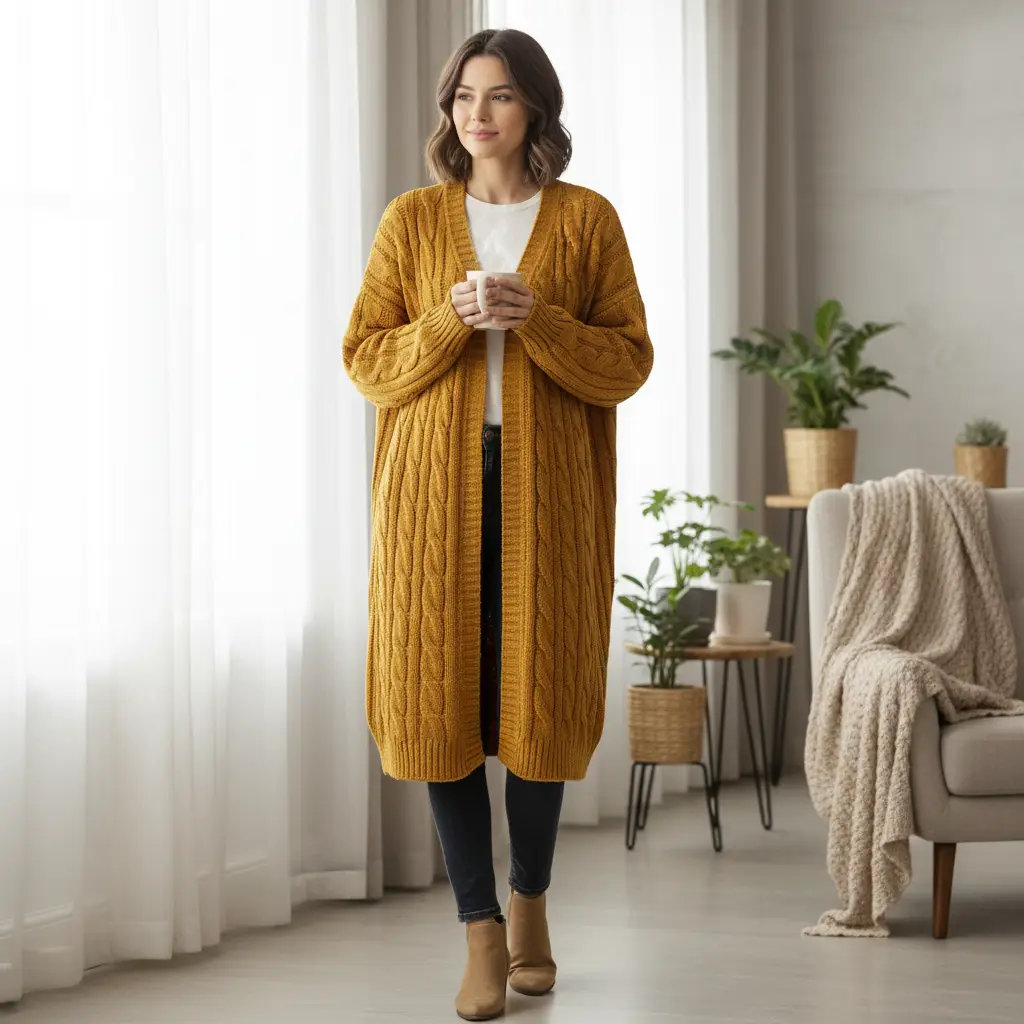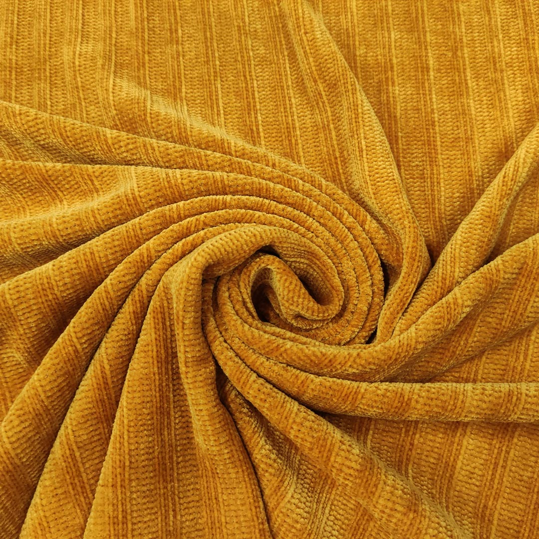 Tessuto maglia a treccia mano ciniglia tinta unita senape