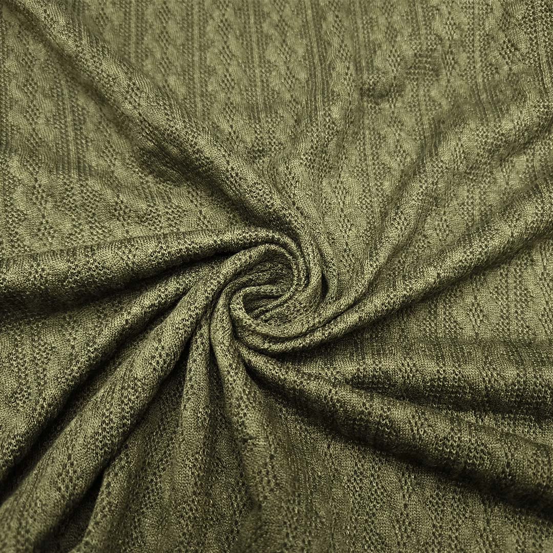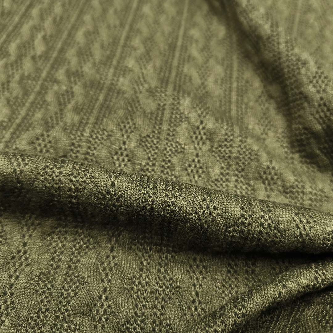 Tessuto Maglia Mano Lana motivo treccia tinta unita verde militare