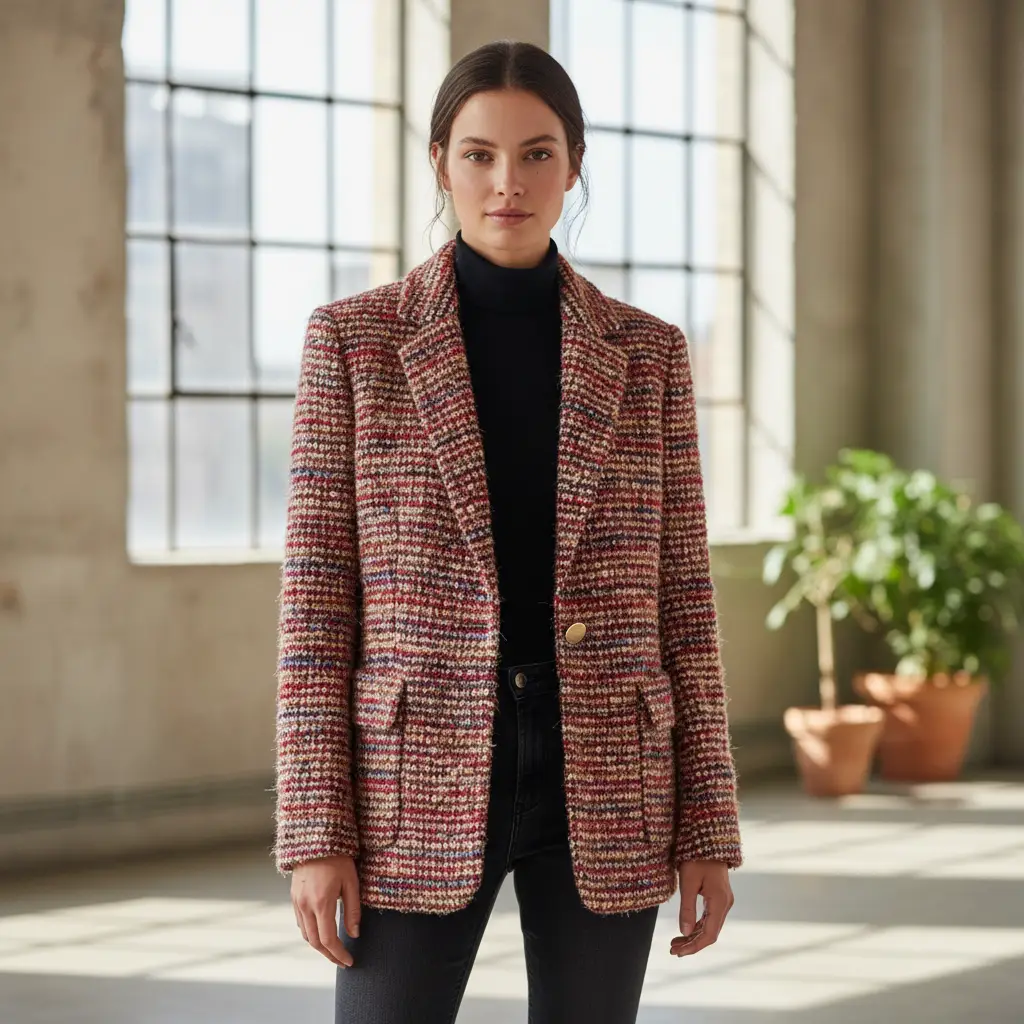 Tessuto Maglia Tweed lurex dalla mano corposa , morbida ed elastica, ideale per realizzare capi comodi e scintillanti da utilizzare nella stagione autunno – inverno.
