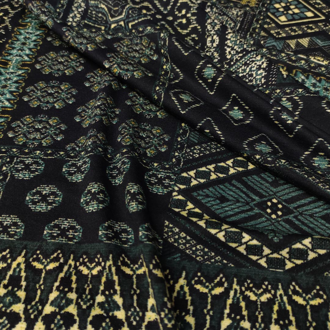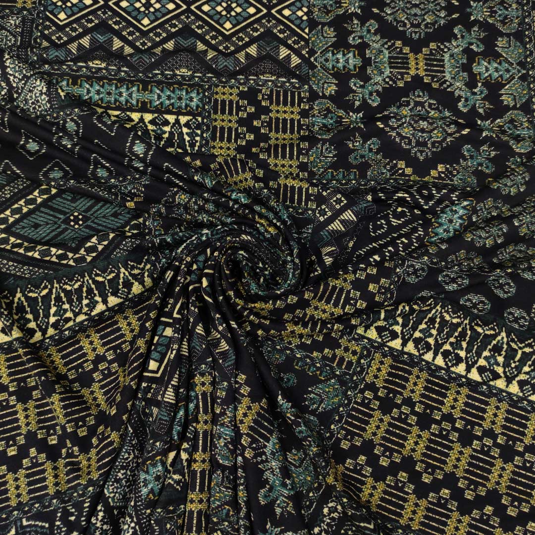 Tessuto jersey peso autunnale a fantasia motivo astratto blu notte – giallo