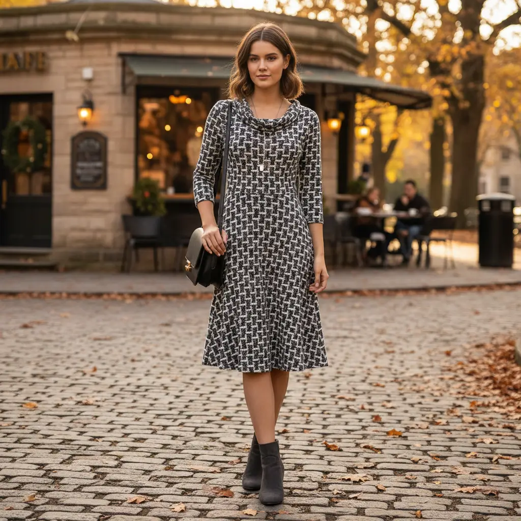 Tessuto Jersey peso autunnale a fantasia dalla mano corposa , morbida ed elastica, ideale per realizzare capi comodi e morbidi da utilizzare nella stagione autunno – inverno.