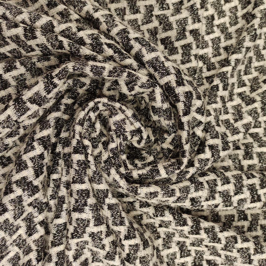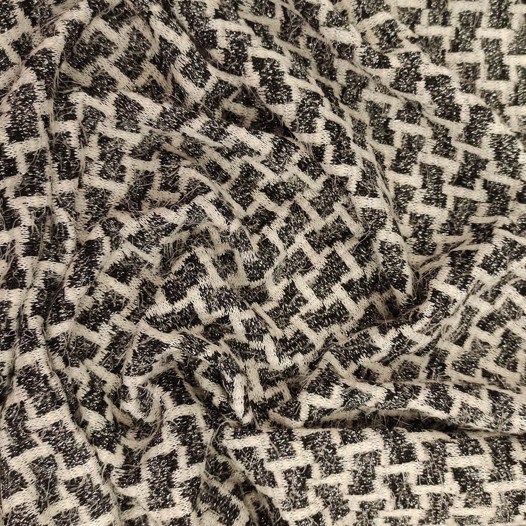 Tessuto Jersey peso autunnale a fantasia motivo astratto lurex grigio – nero – bianco