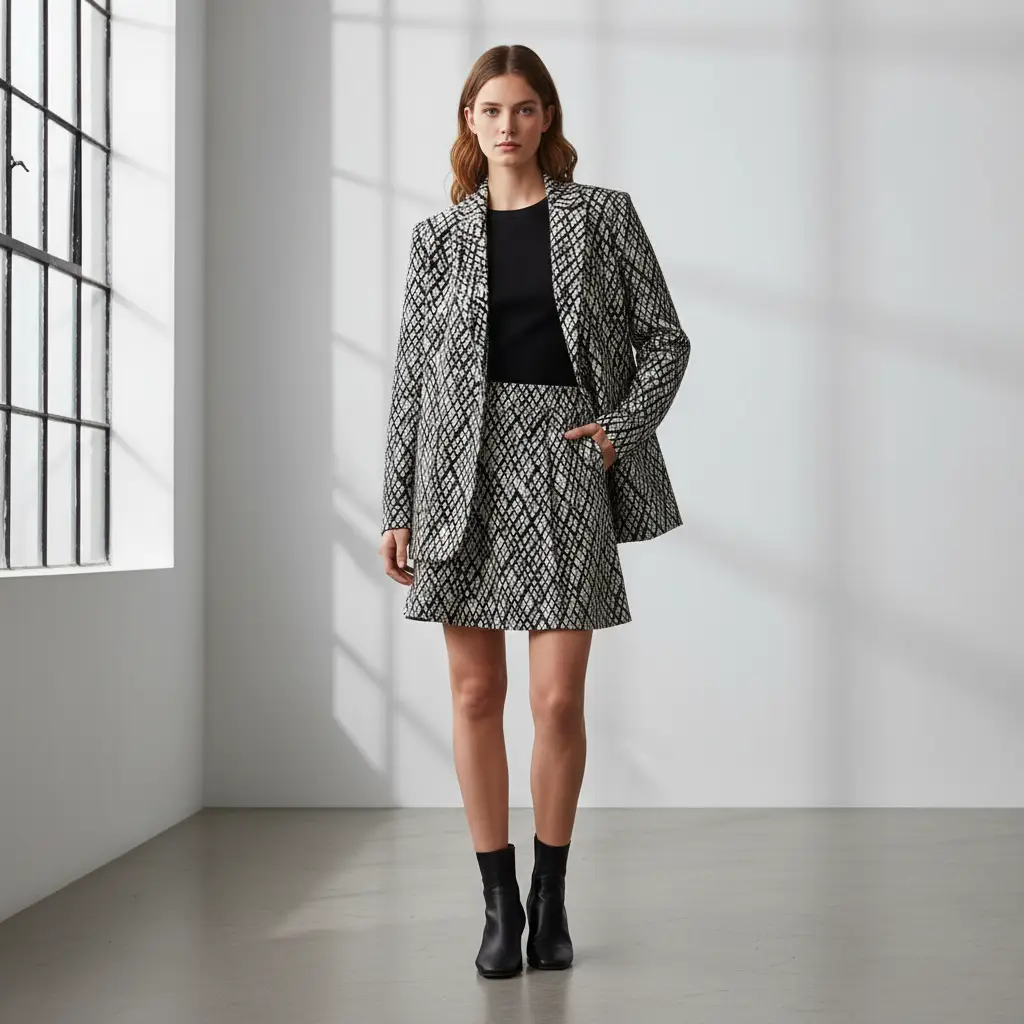 Tessuto Jersey peso autunnale a fantasia motivo bianco – nero