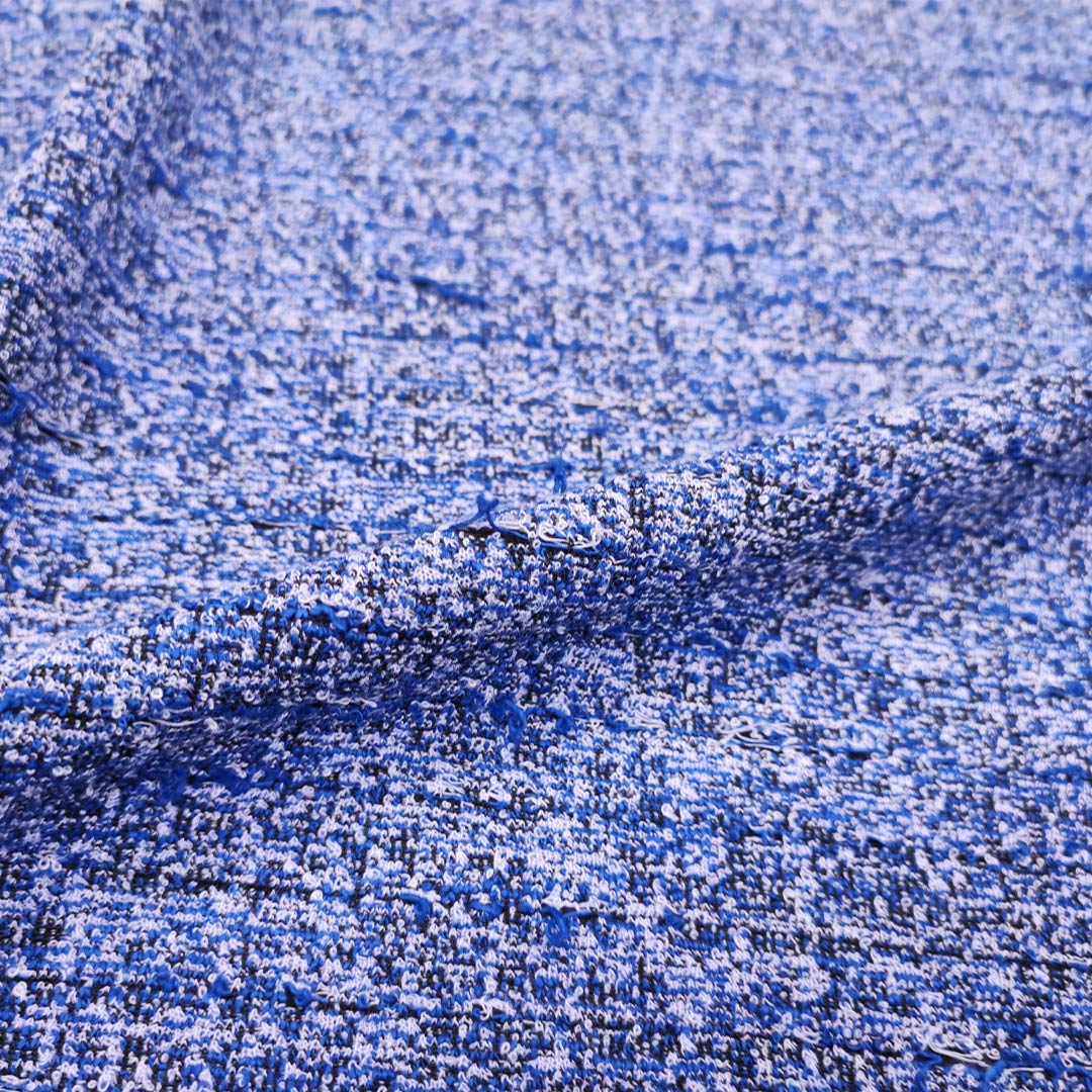 Tessuto Jersey peso autunnale motivo tweed bianco – nero – bluette