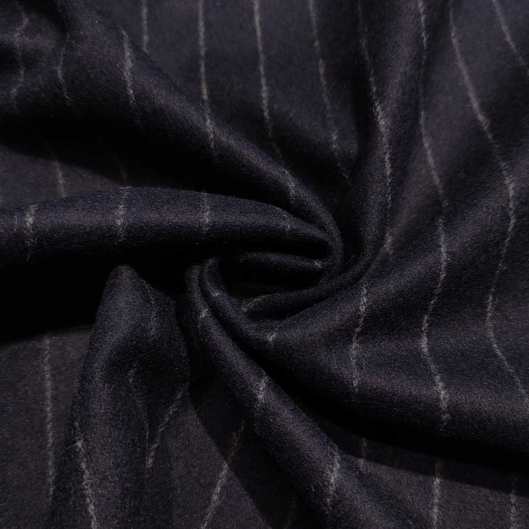 Tessuto Flanella di pura lana motivo gessato dalla mano calda e compatta, si presta alla realizzazione di capi da utilizzare nella stagione autunno inverno come: giacche, pantaloni e gonne.