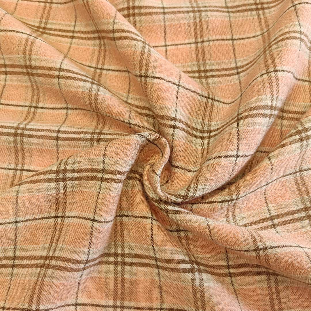 Tessuto Misto Lino a fantasia motivo quadri rosa chiaro – marrone
