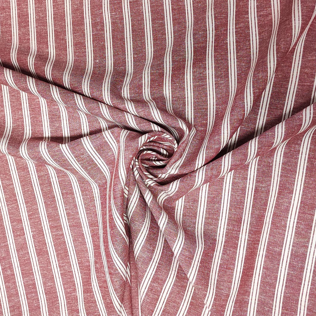 Tessuto Misto lino a fantasia motivo rigato bordeaux – bianco