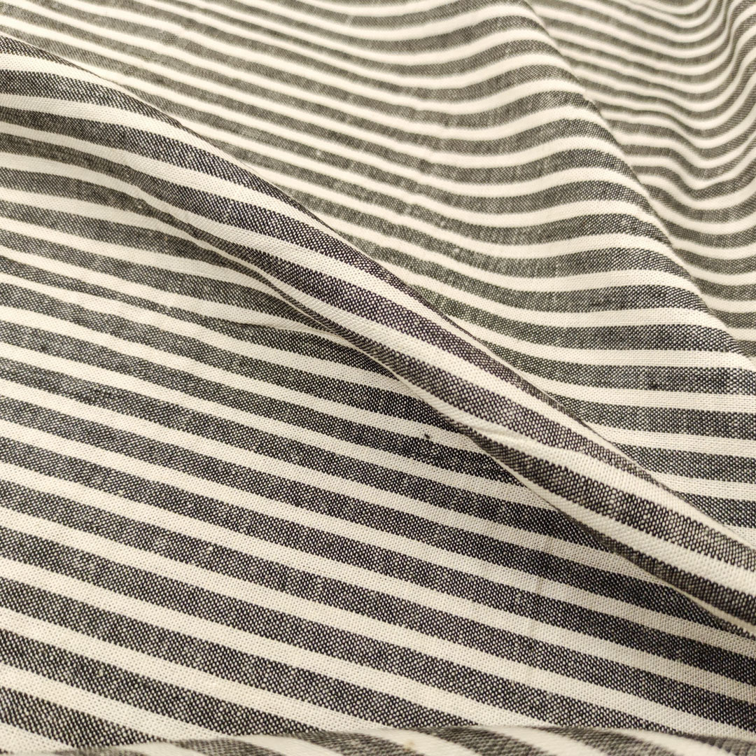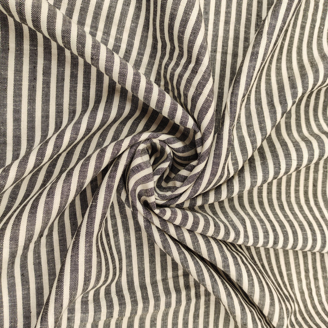 Tessuto Misto lino a fantasia motivo rigato stretto nero – bianco