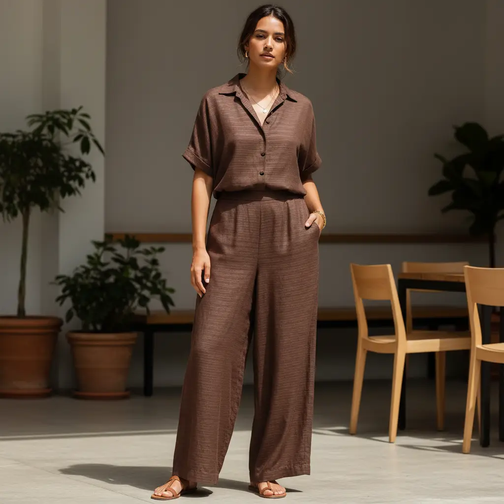 Tessuto Misto Lino devorè in tinta unita motivo rigato dalla mano morbida e fluente, si presta alla creazione di capi freschi e comodi da utilizzare nella stagione primavera – estate come: camicie, pantaloni, abiti e bluse.