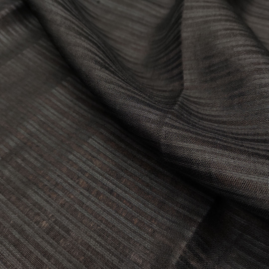 Tessuto Misto Lino devorè in tinta unita motivo rigato nero