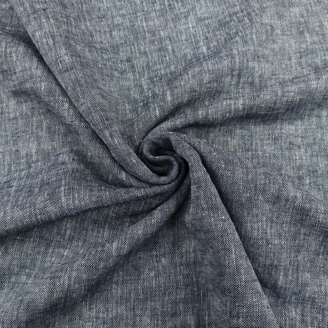 Tessuto Misto Lino in tinta unita effetto melange blu