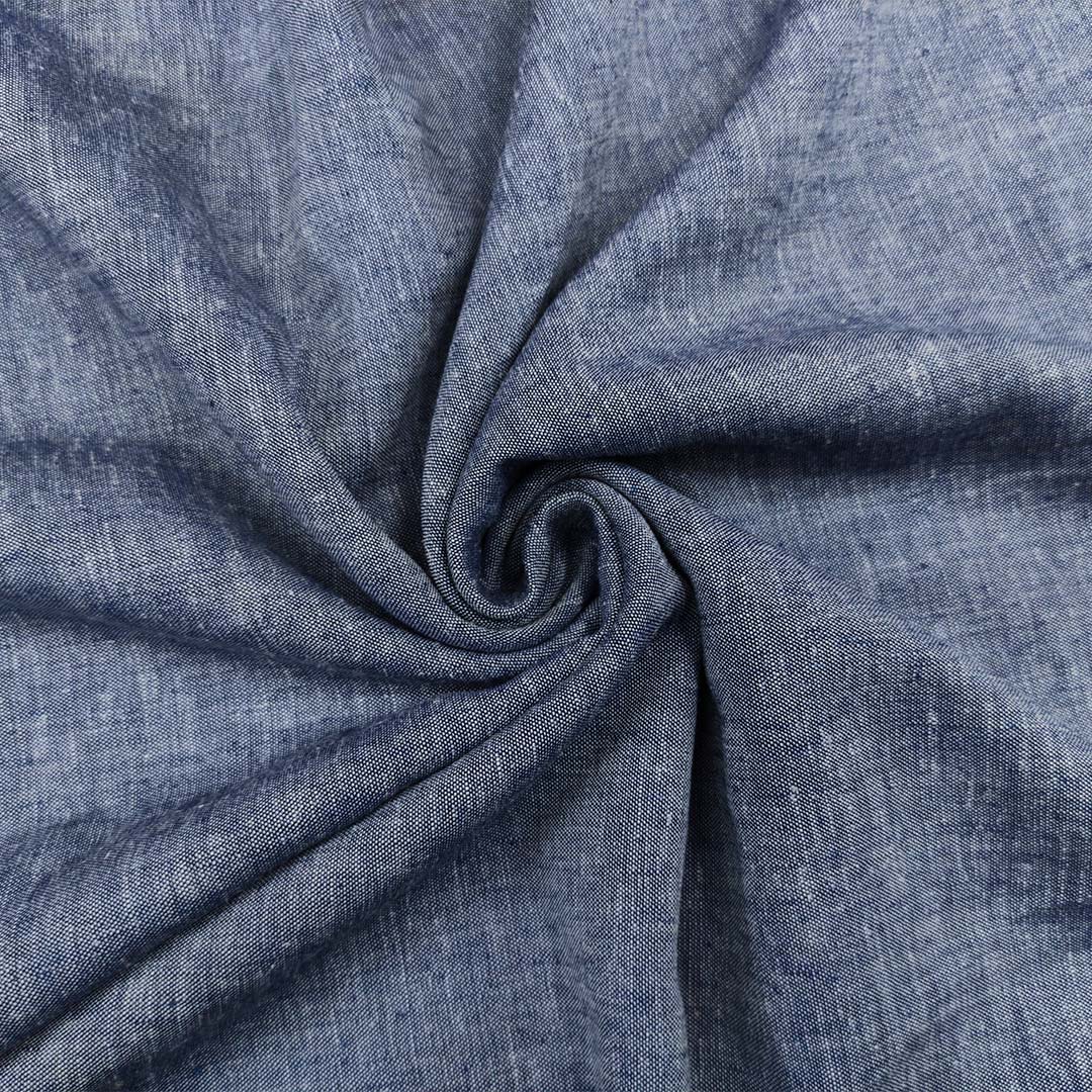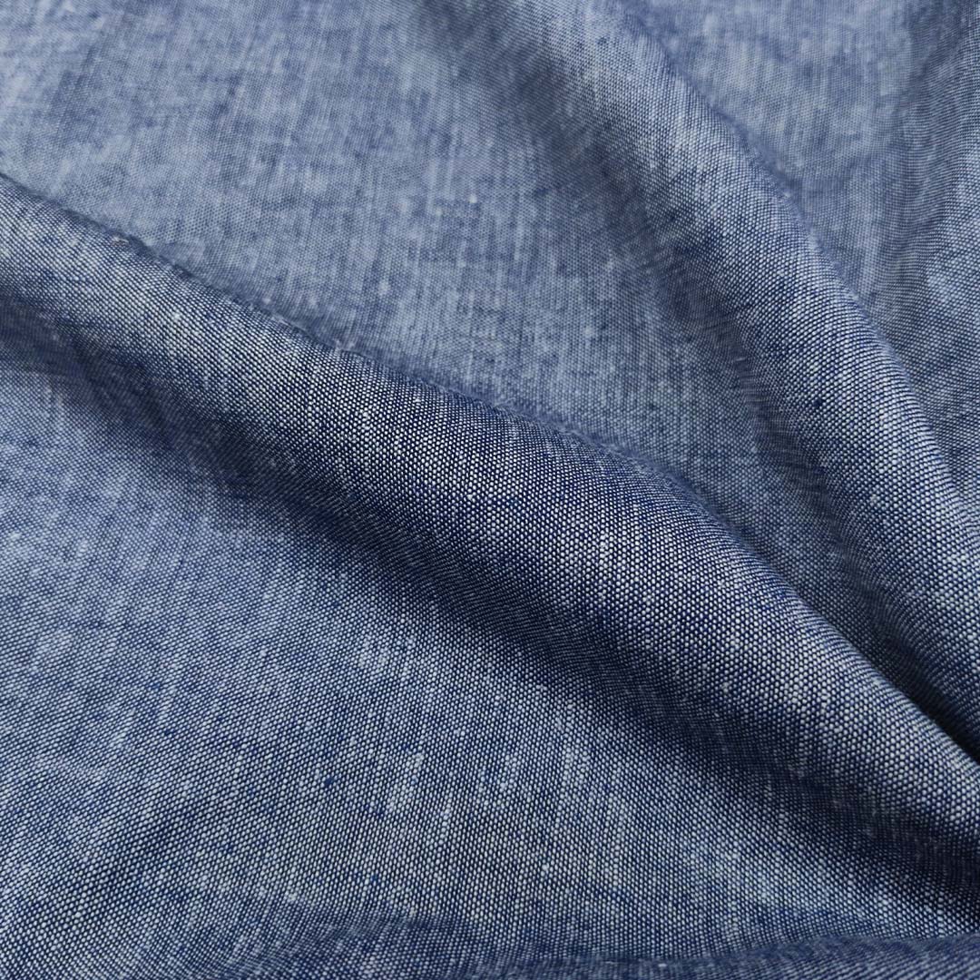 Tessuto Misto Lino in tinta unita effetto melange jeans