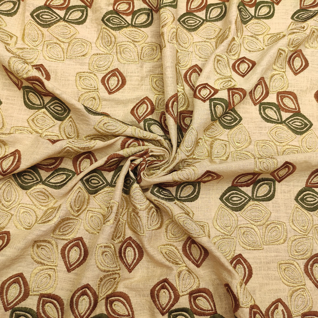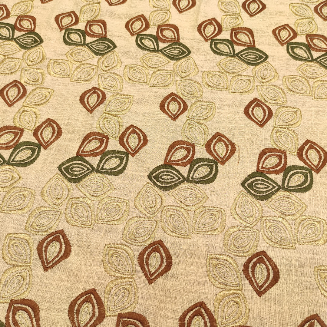 Tessuto Misto Lino ricamato motivo astratto beige – ruggine – verde