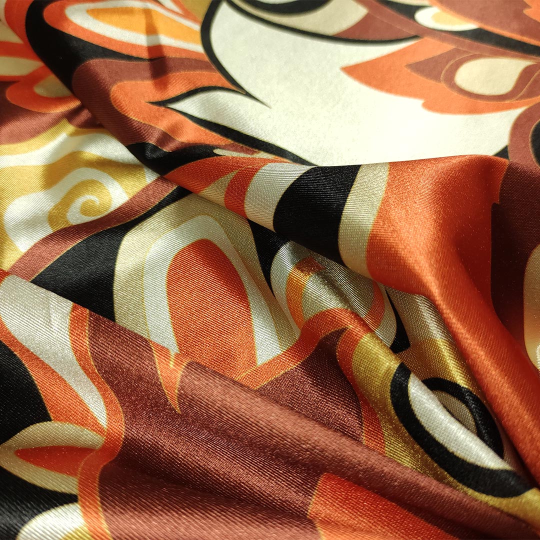 Tessuto Lycra lucida a fantasia ideale per realizzare capi comodi ed elasticizzati come: abiti, pantaloni, body, intimo, costumi da bagno ed abbigliamento sportivo.