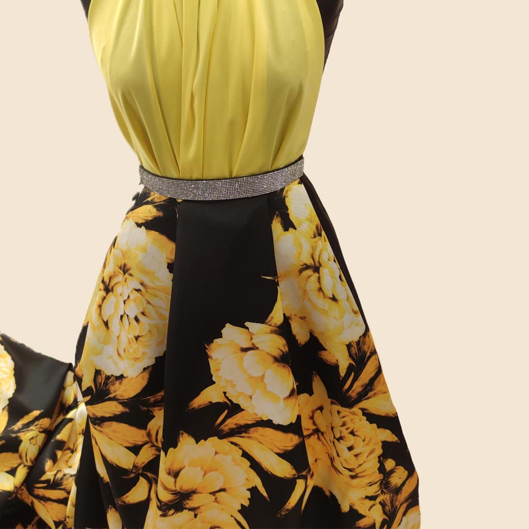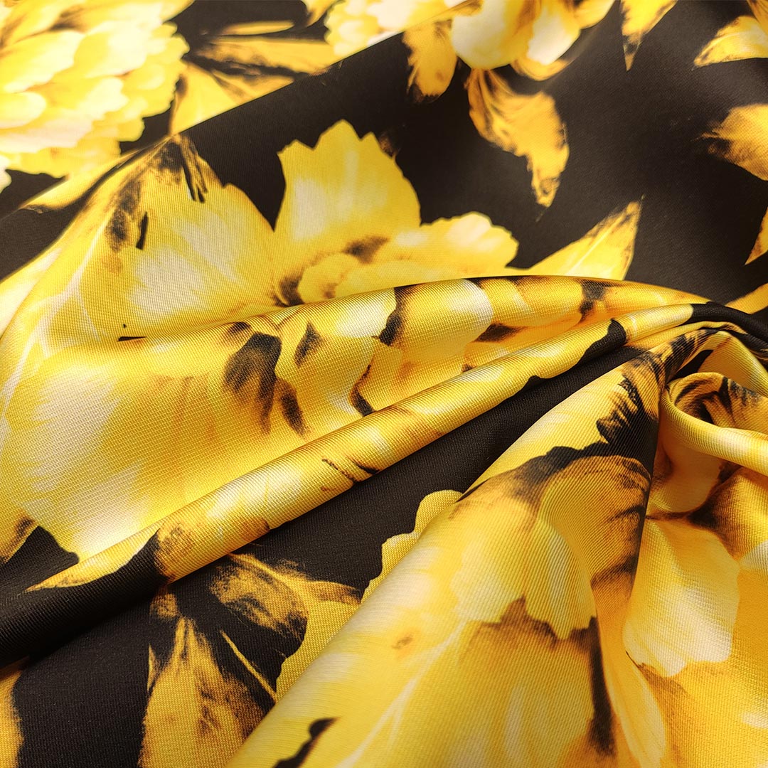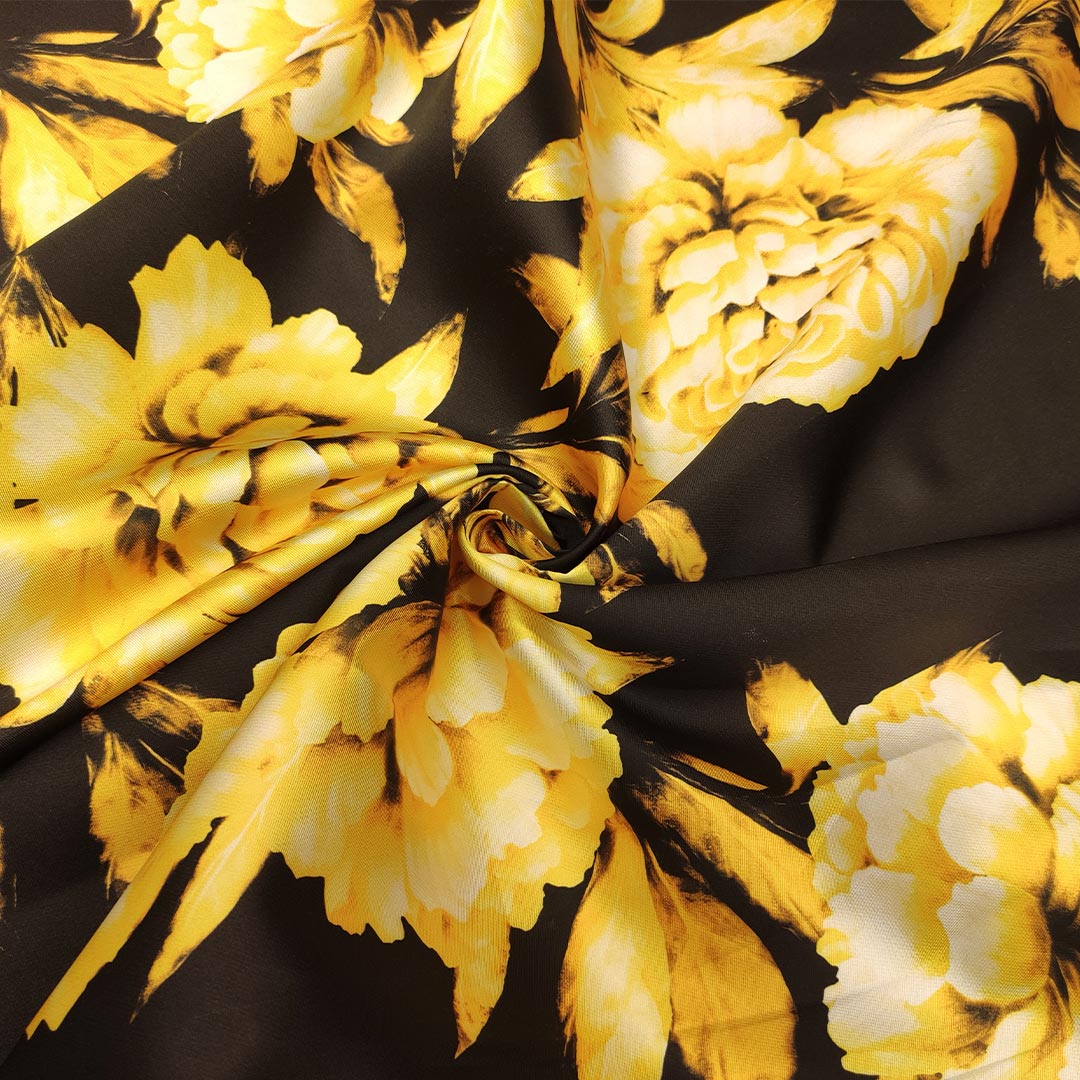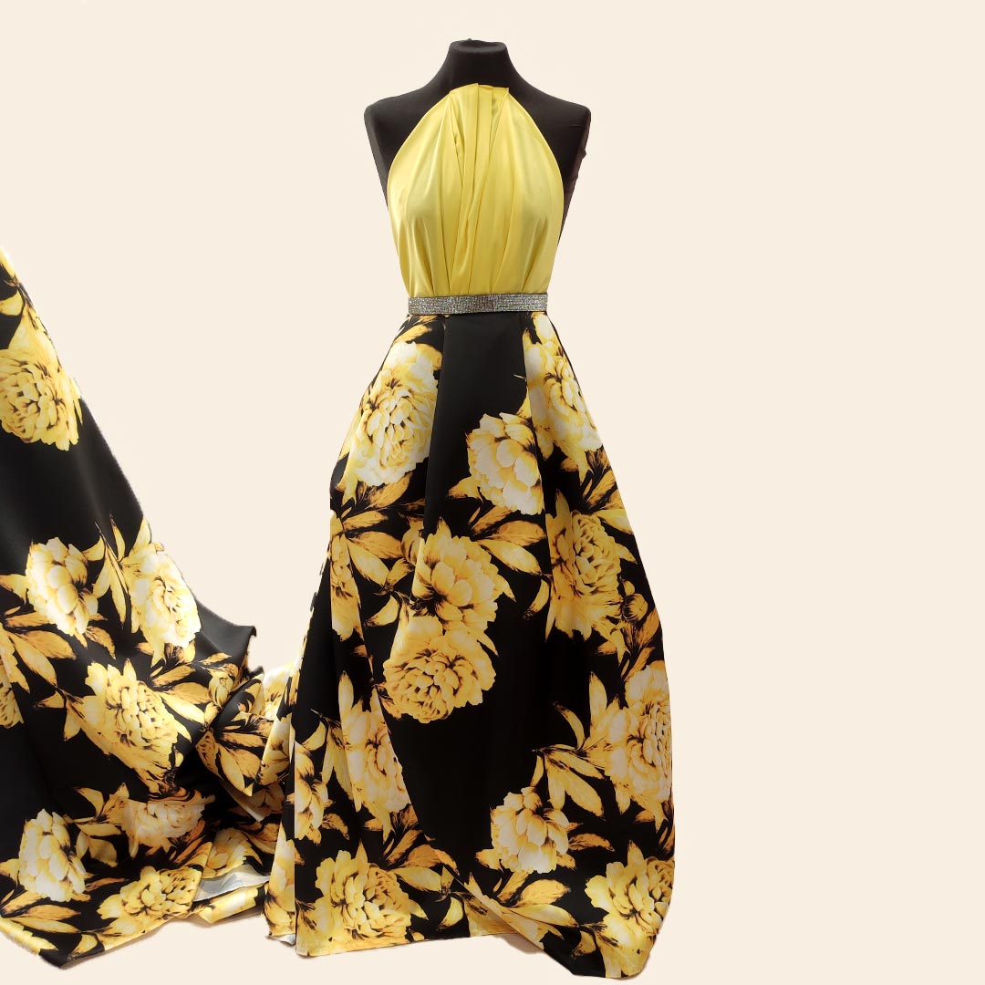 Tessuto Mikado a fantasia motivo floreale nero – giallo